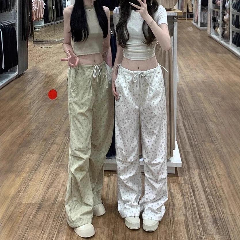 Женские брюки карго широкие из ледяного шелка с цветочным принтом на весну/лето 2025: Свободный Ретро Спортивный Стиль — купить товар онлайн с бесплатной доставкой по всему миру!