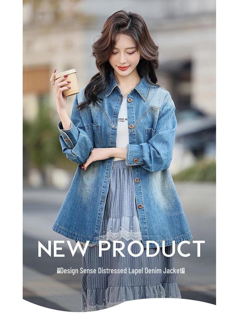 Весна 2025 Женская Универсальная Джинсовая Куртка - Модный Топ с Дизайном Лацканов (Y2501)