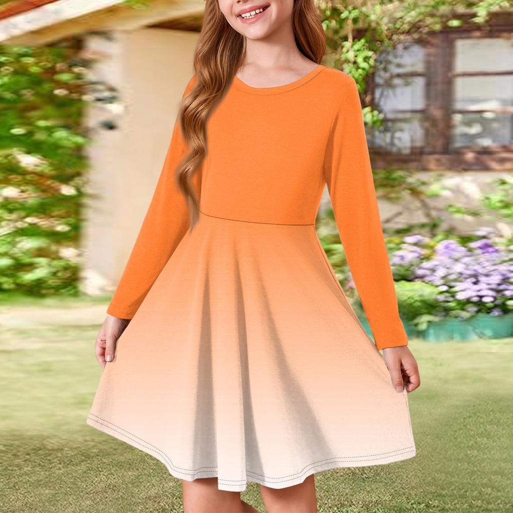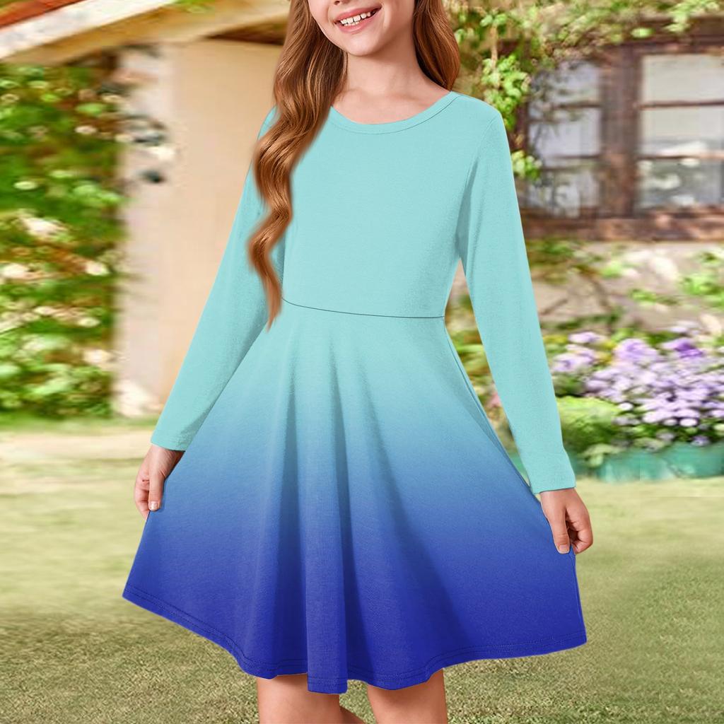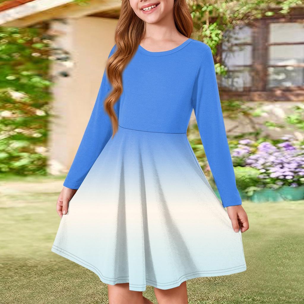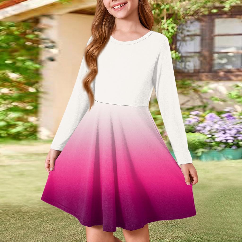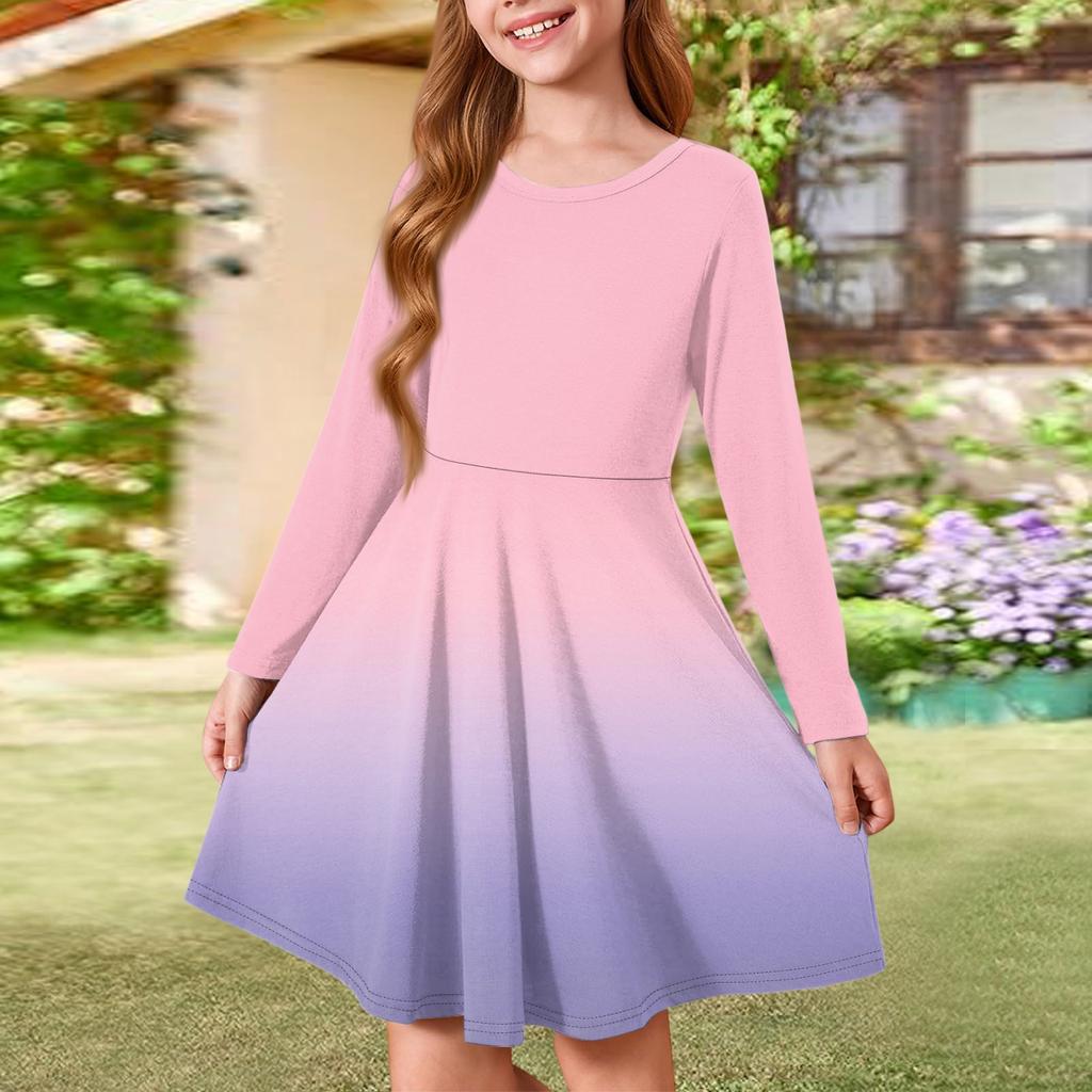 Летнее платье принцессы для девочек - платье-футболка А-силуэта с длинными рукавами