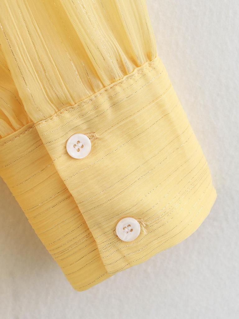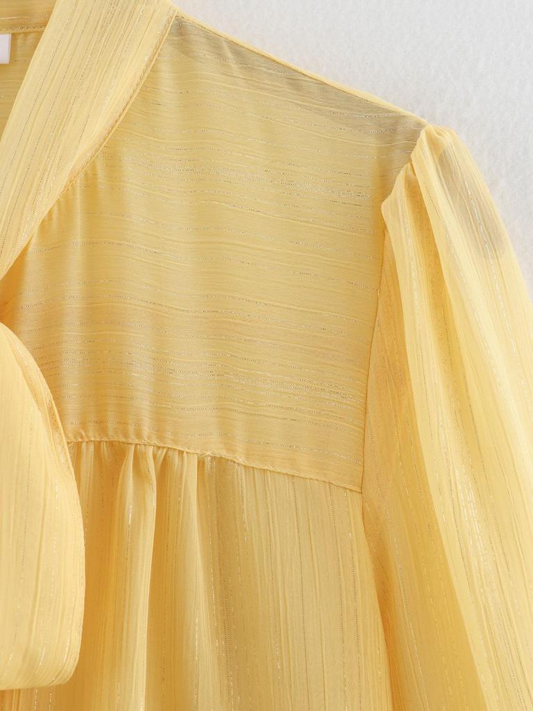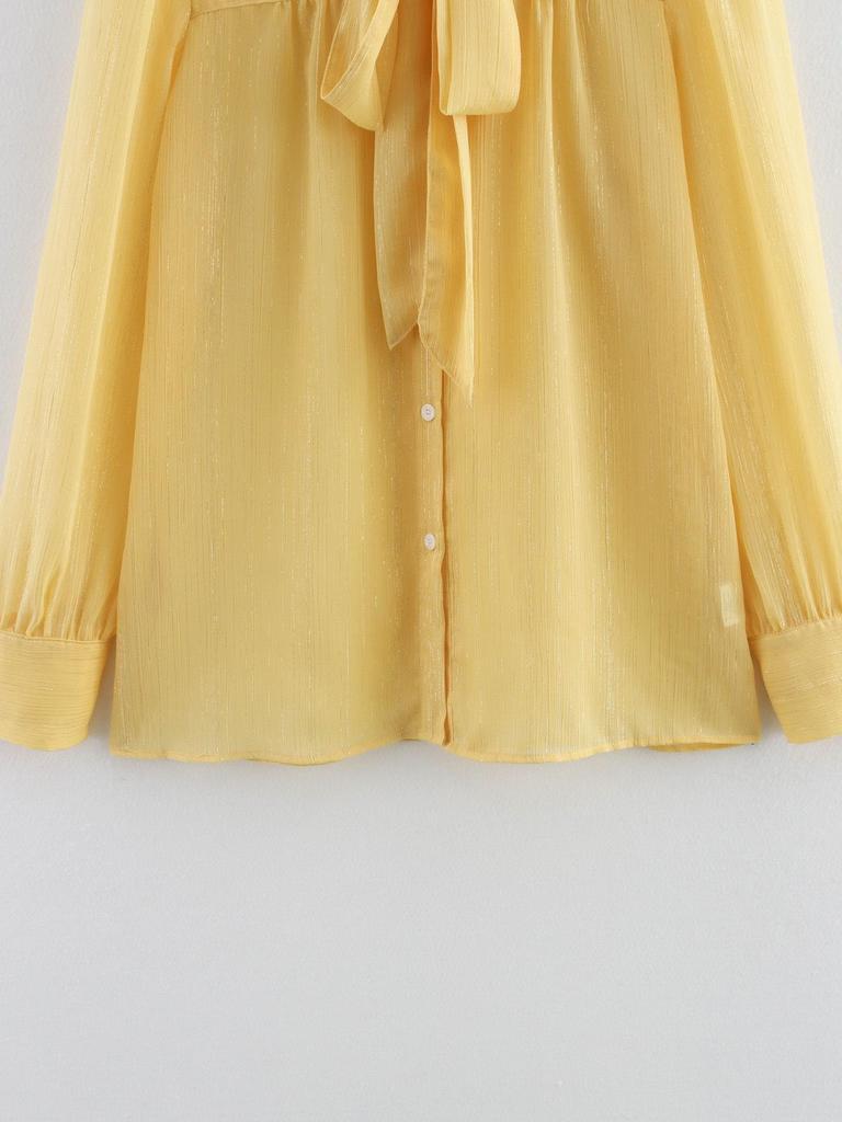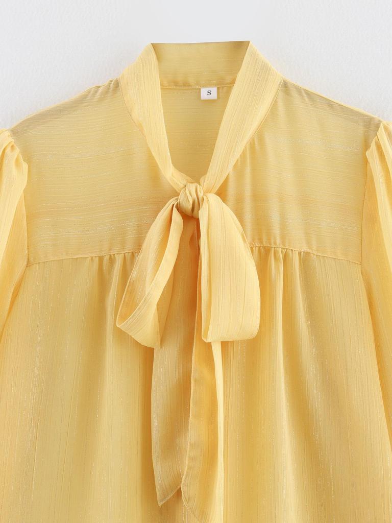 Почувствуйте идеальное сочетание европейской и американской моды с этой женской двухцветной легкой рубашкой с длинным рукавом на весну 2025 года.. Эта рубашка, изготовленная из высококачественного полиэстера, сочетает в себе долговечность и мягкость, обеспечивая комфорт при носке.. Его однотонный узор элегантно подчеркнут V-образным вырезом и очаровательным украшением в виде бантика, добавляющим нотку изысканности вашему гардеробу.. Длинные рукава делают его идеальным выбором для переходного периода между сезонами, обеспечивая и стиль, и универсальность для различных случаев.