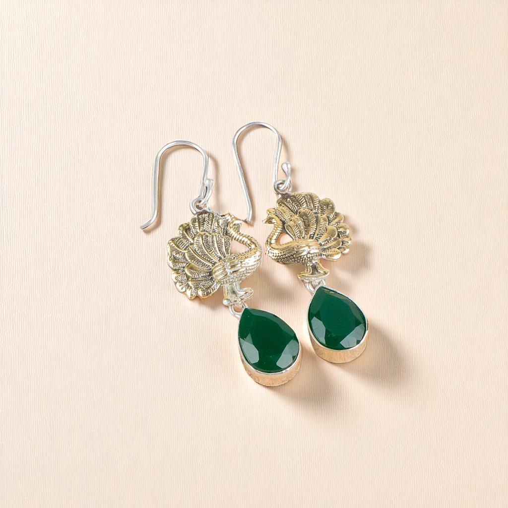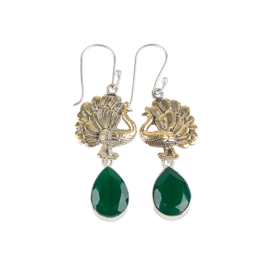 Зеленый Оникс Драгоценный Камень 925 Стерлинговое Серебро Ювелирные Изделия Ручной Работы Свадебные Серьги 2.20" EE-44-16