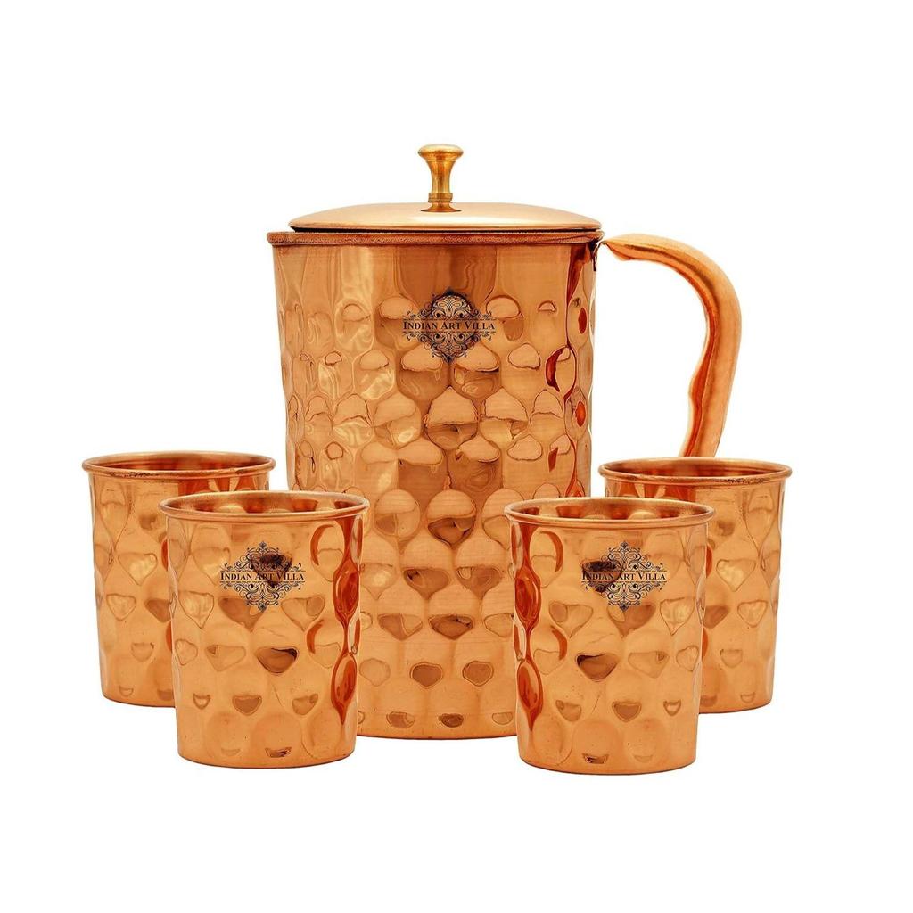 🎁 Наши дизайнерские медные кувшины и стаканы для воды имеют красивые дизайны ручной работы. Это придает набору эстетичный медный