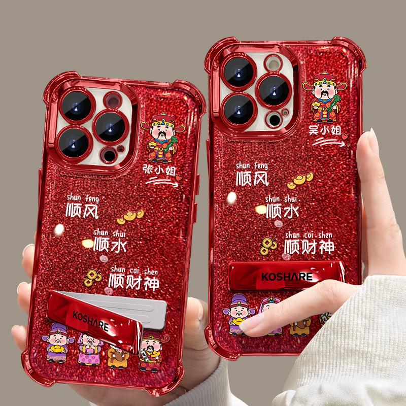 Пять Богов Богатства Фамилия Кронштейн Подходит для Apple 16pro Новый год Чехол для мобильного телефона 15 Гальваническое покрытие Четыре угла Защита от падения 14 Мягкий силикон X