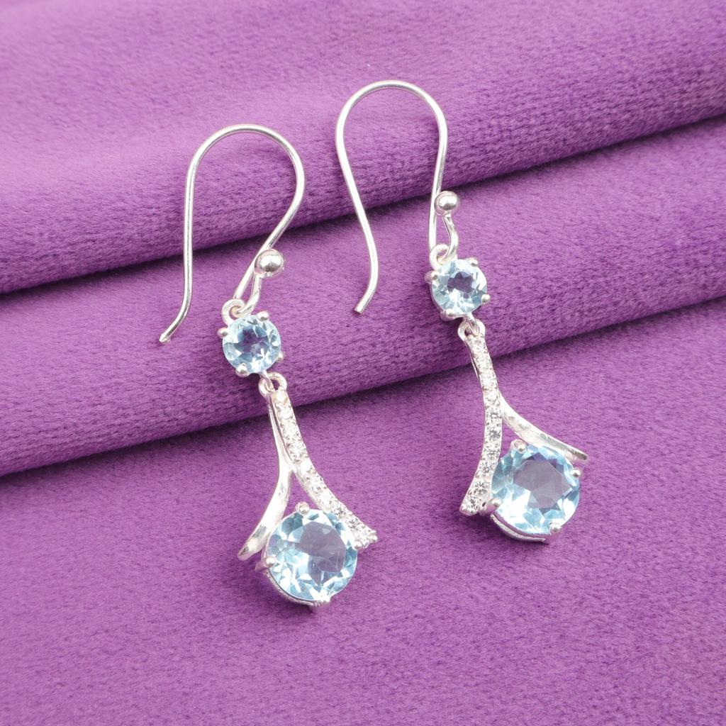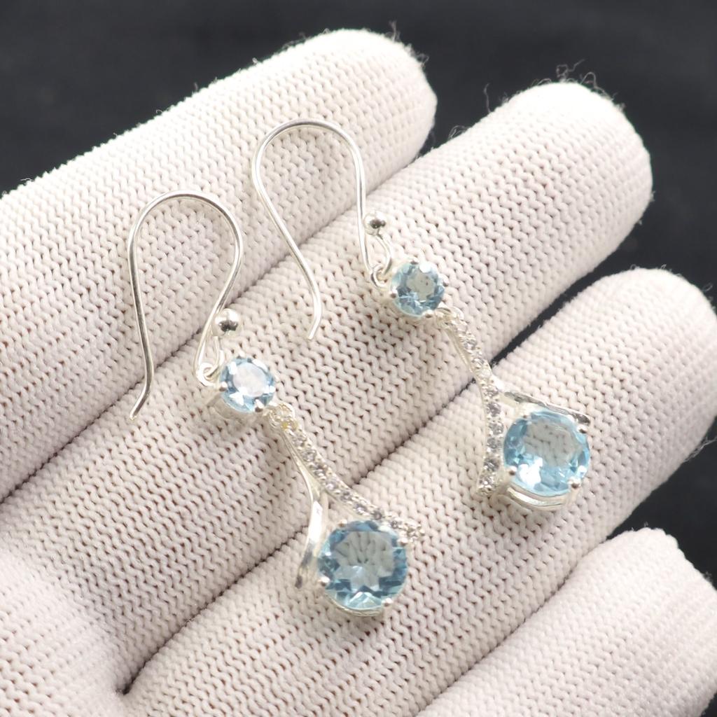 Драгоценный камень Голубой Топаз 925 Стерлинговое Серебро Ювелирные Изделия Циркониевые Серьги 1.84" Для Подарка CZE-9-4