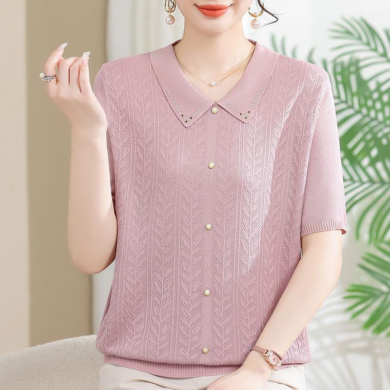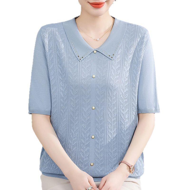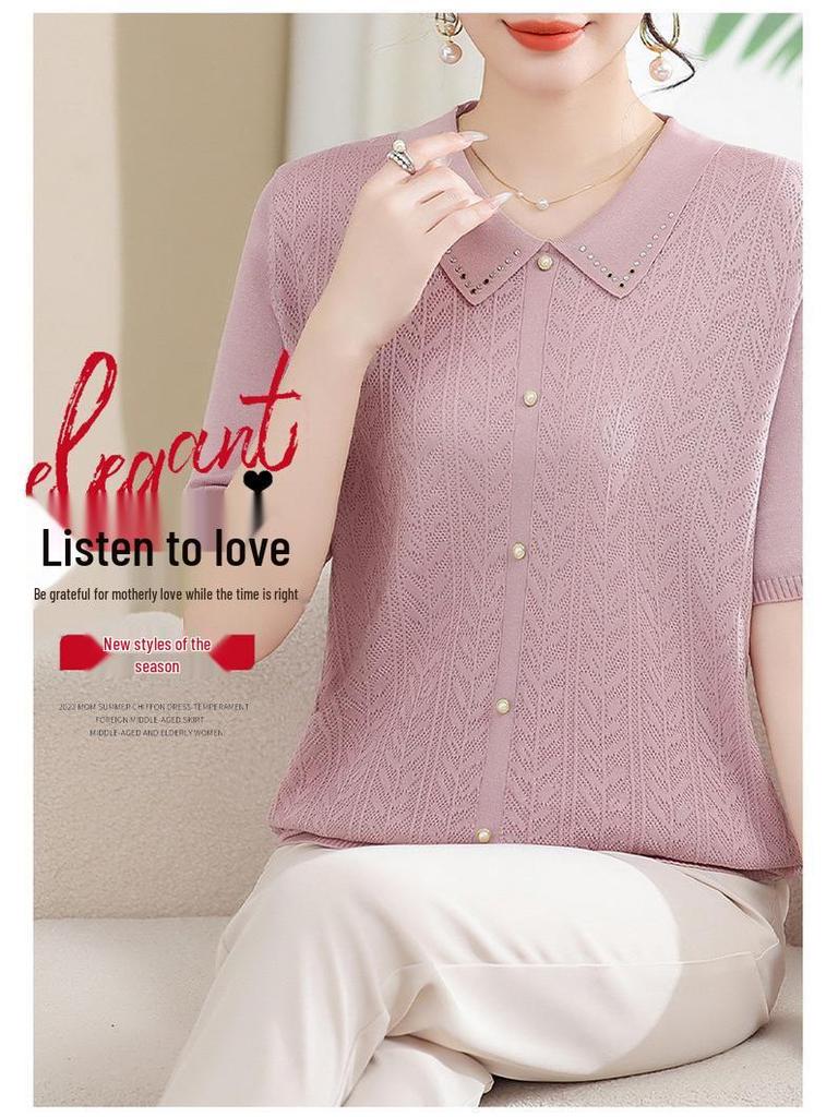 Представляем стильный и удобный топ с коротким рукавом, разработанный для женщин среднего и пожилого возраста. Этот кардиган с нежным кукольным воротником изготовлен из премиального трикотажа «ледяной шелк», обеспечивающего мягкость и воздухопроницаемость, что идеально для лета.. Вязаный материал обеспечивает легкое и воздушное ощущение, что делает его идеальным для ношения в теплую погоду.. Тщательно продуманные короткие рукава обеспечивают дополнительный комфорт, а элегантный дизайн добавляет нотку изысканности любому наряду.. Этот кардиган идеально подходит для повседневных прогулок или непринужденных встреч, он органично сочетает в себе моду и функциональность.