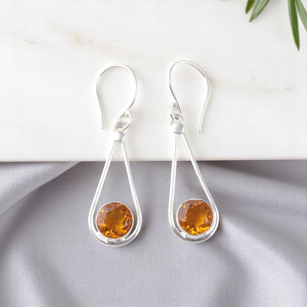 Цитрин Драгоценный камень 925 Стерлинговое серебро Ювелирные изделия Ручной работы Серьги-капли 1,76" EE-126-2