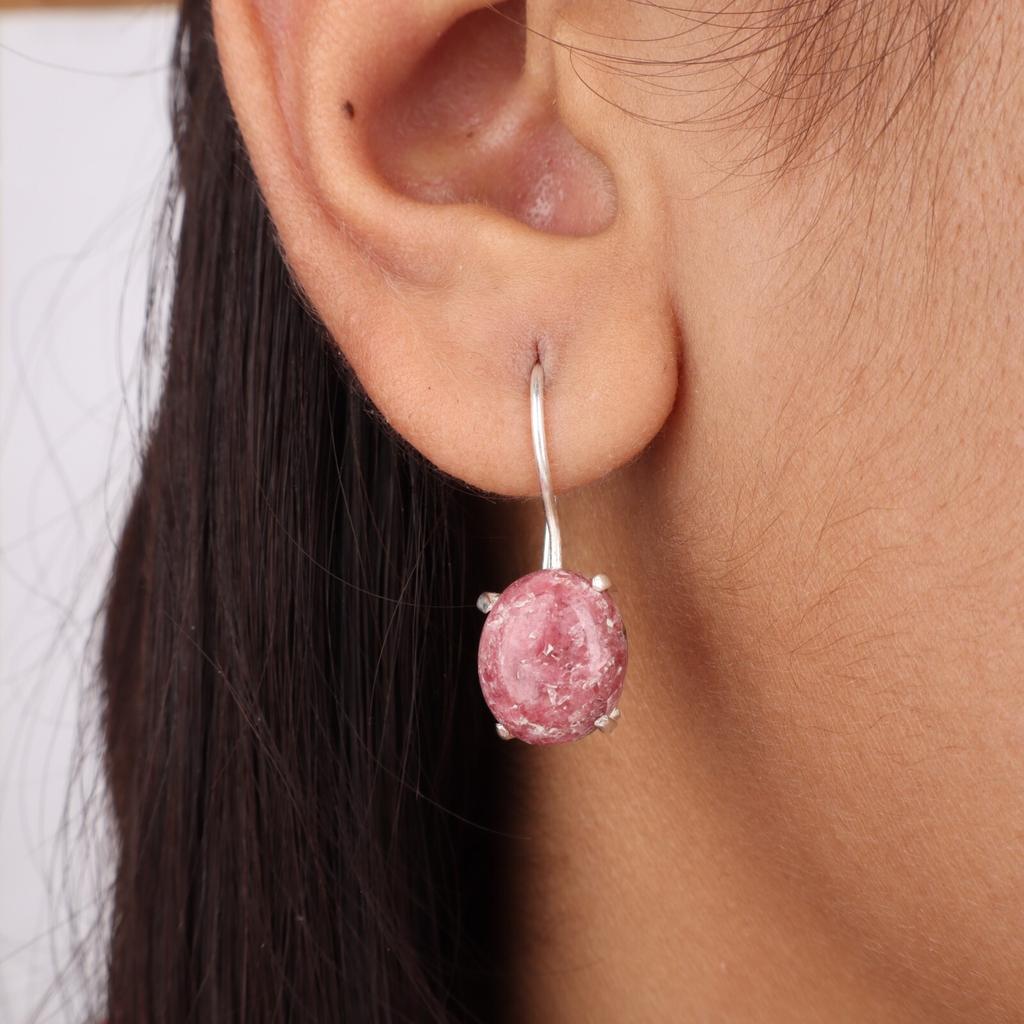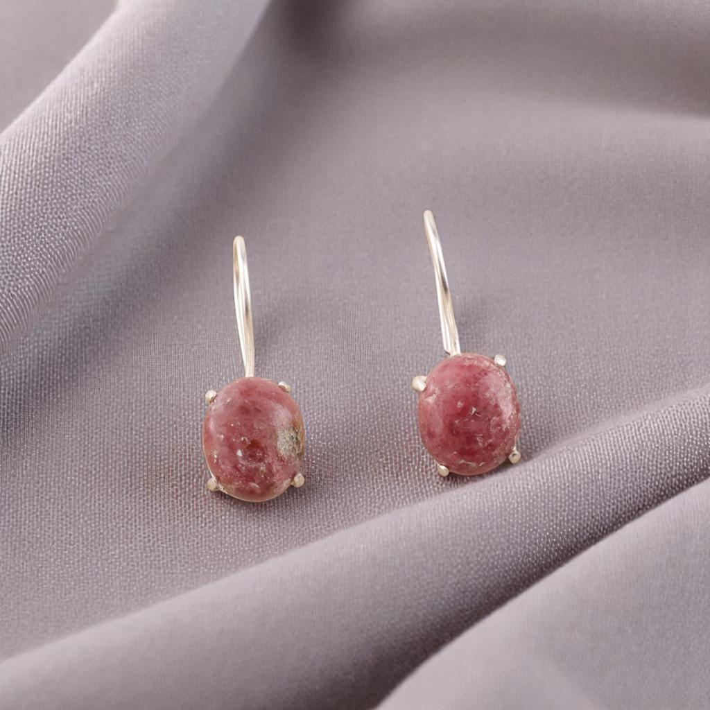 Черный Родонит Драгоценный Камень 925 Стерлинговое Серебро Ювелирные Изделия Ручной Работы Серьги 1.05" EE-173-35