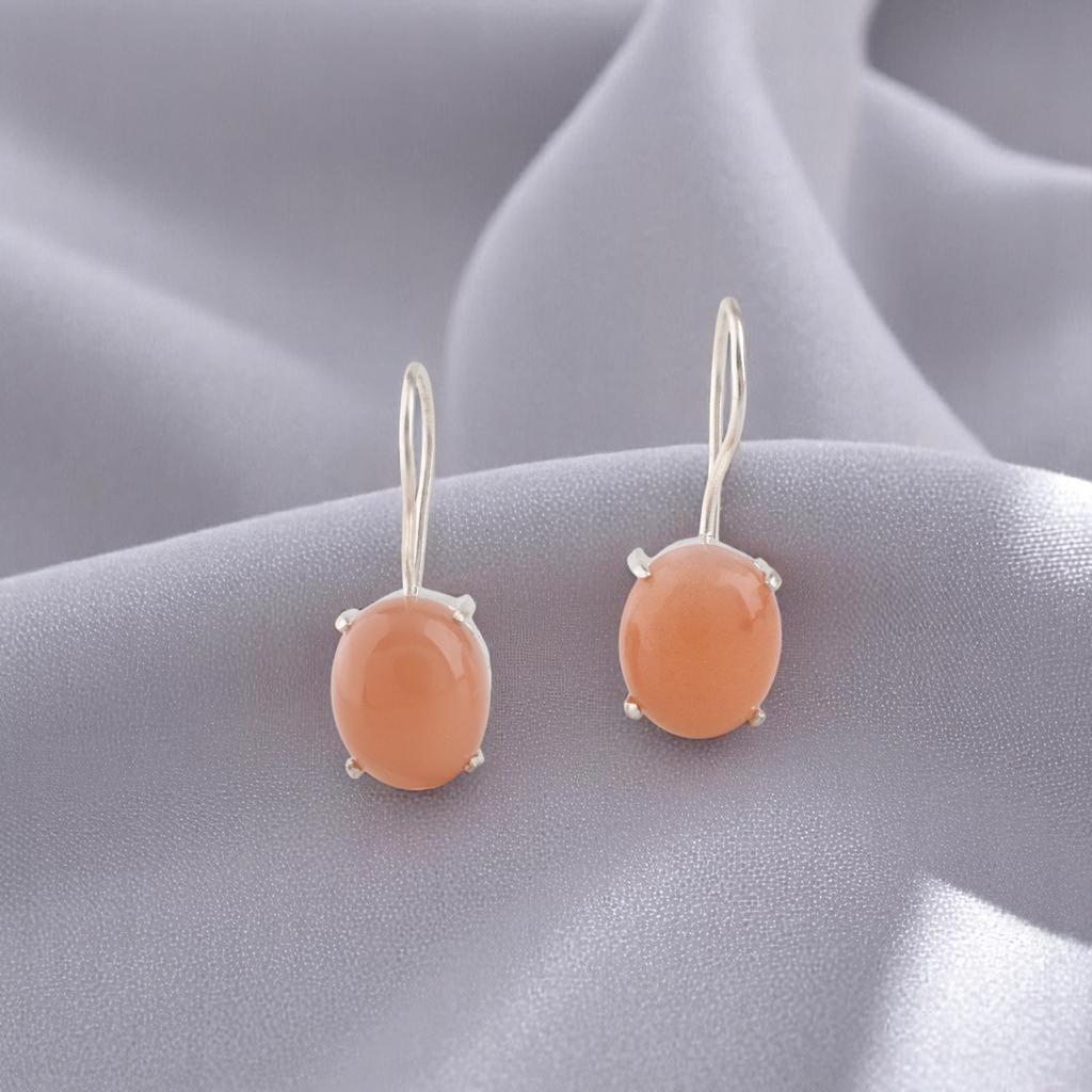 Натуральный персиковый лунный камень, драгоценный камень, серьги ручной работы из стерлингового серебра 925 пробы, 1,05" EE-173-25