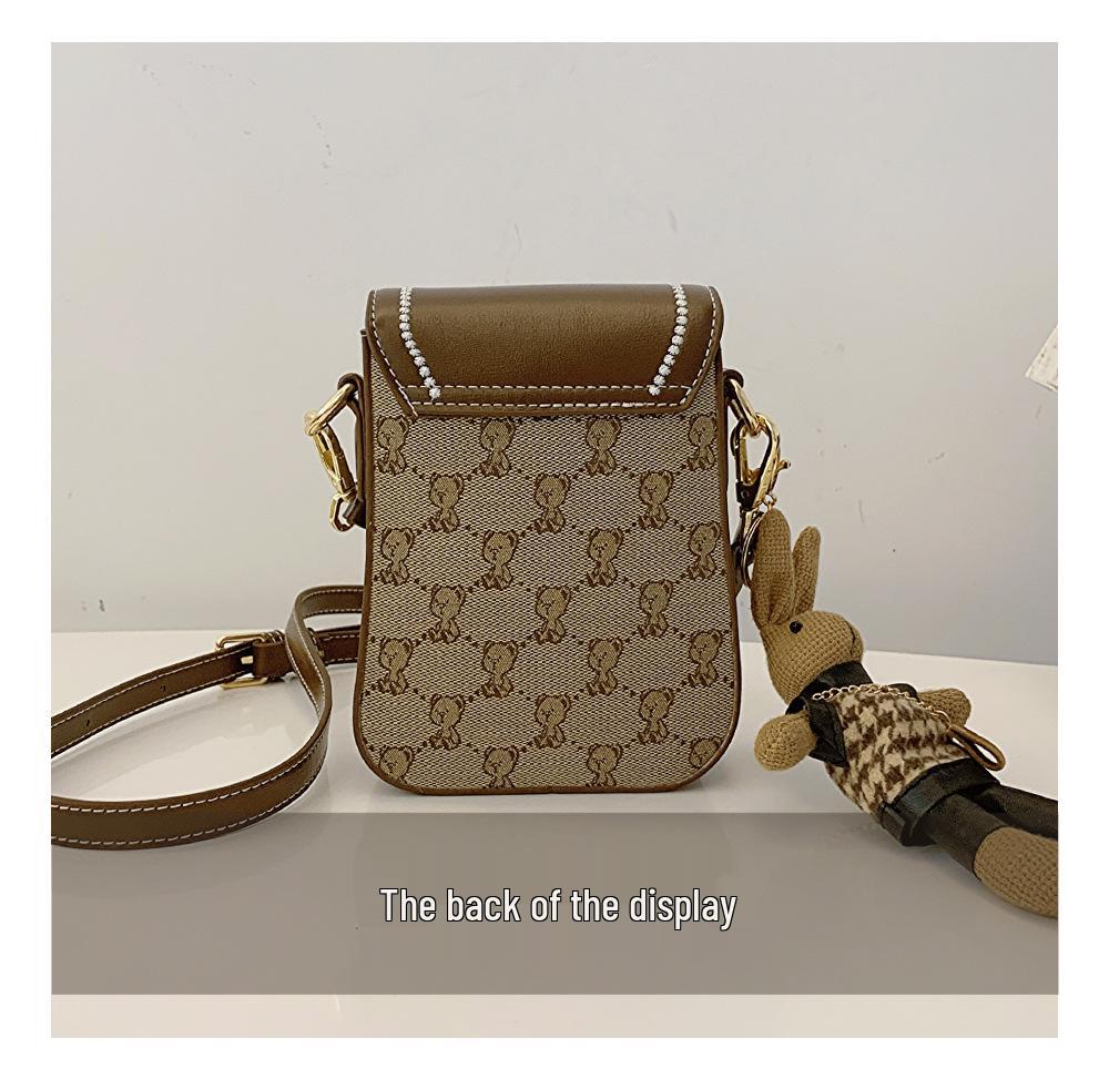 Женская холщовая сумка через плечо с мишкой - Повседневная, универсальная, дизайн в стиле колор-блок