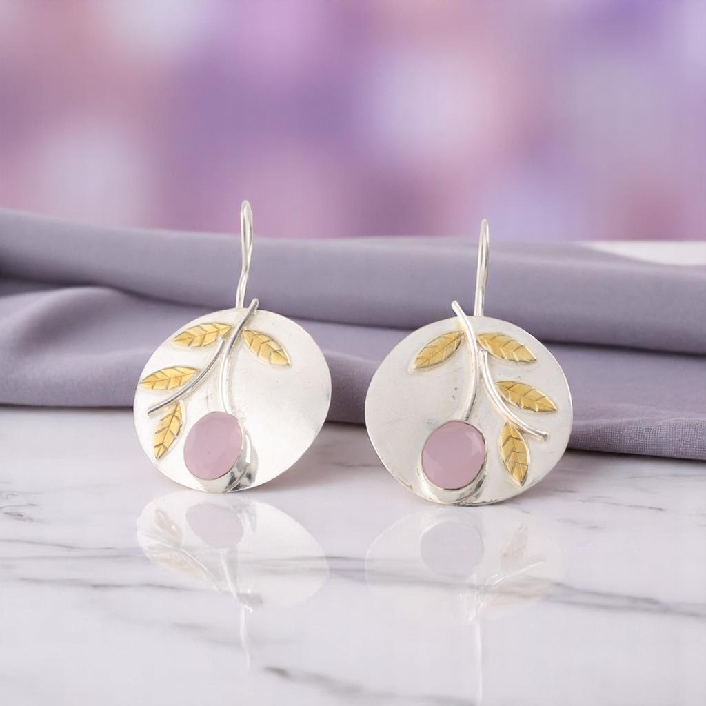 Розовый халцедон драгоценный камень 925 стерлинговое серебро ювелирные изделия ручной работы серьги 1.73" EE-176-7