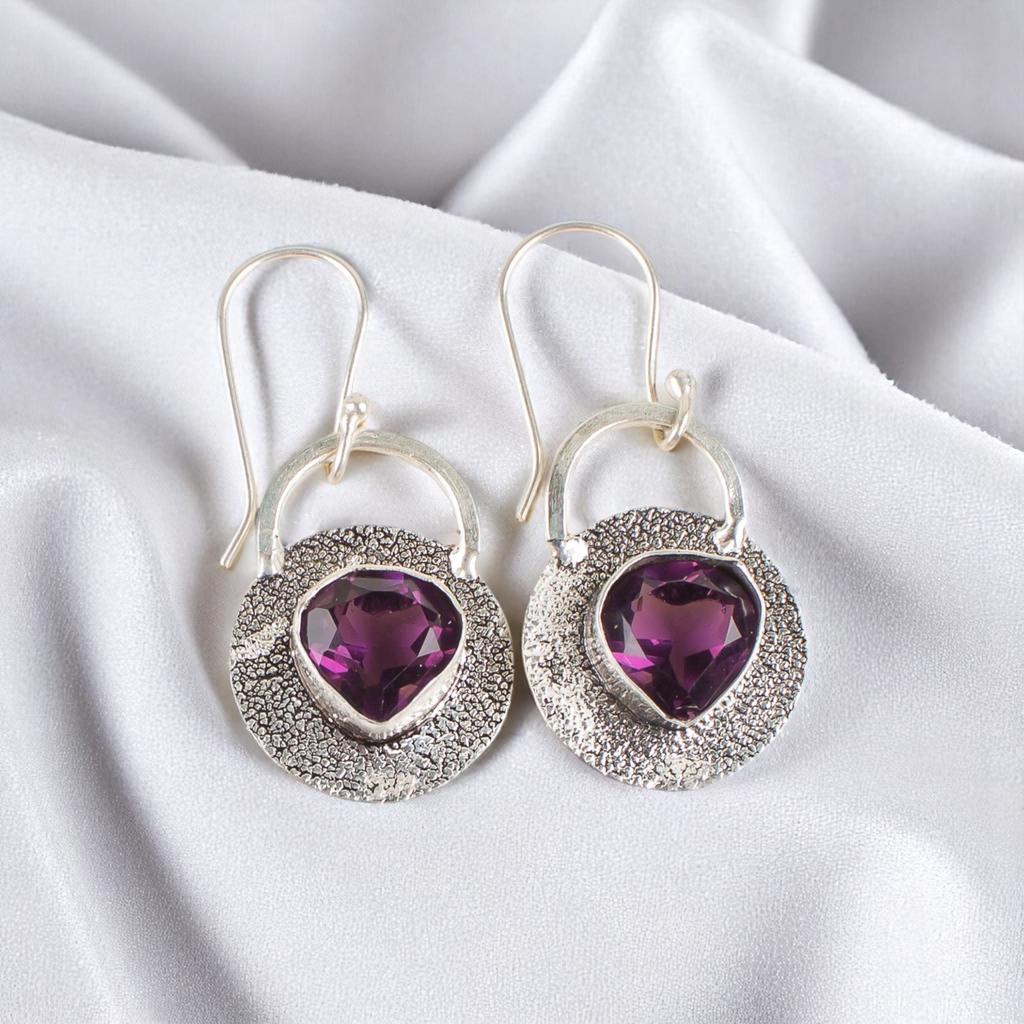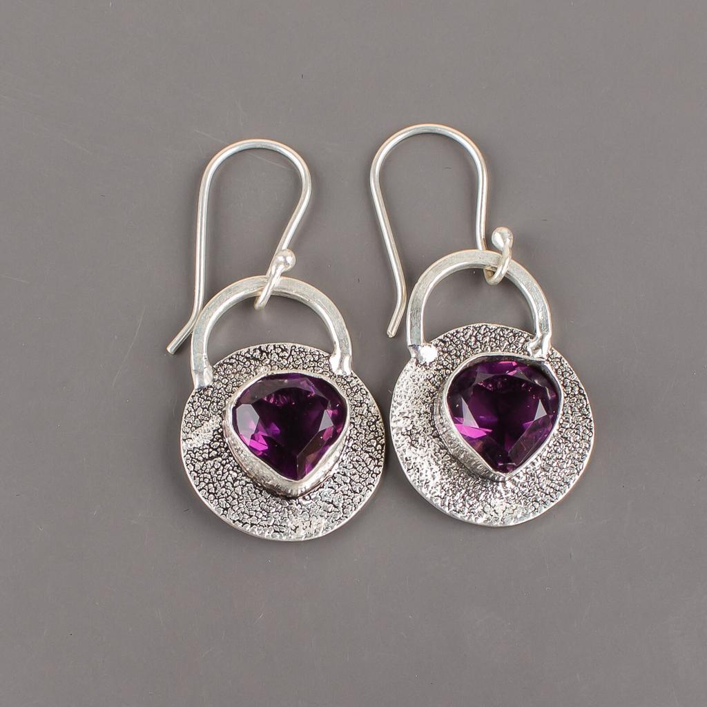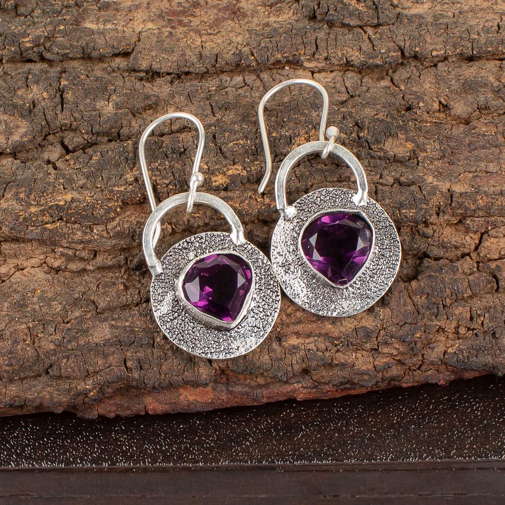 Аметист Драгоценный камень 925 Стерлинговое серебро Ювелирные изделия Ручной работы Серьги 1,30" Для женщин EE-63-10