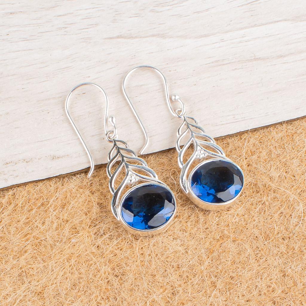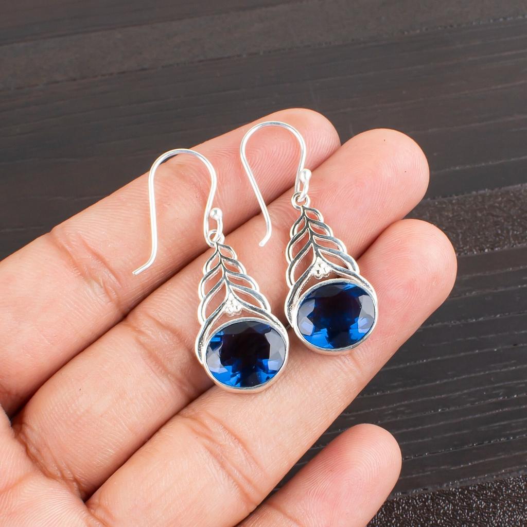 Лондонский голубой топаз Драгоценный камень 925 Стерлинговое серебро Ювелирные изделия Серьги-капли/подвески 1,64" CE-1-3