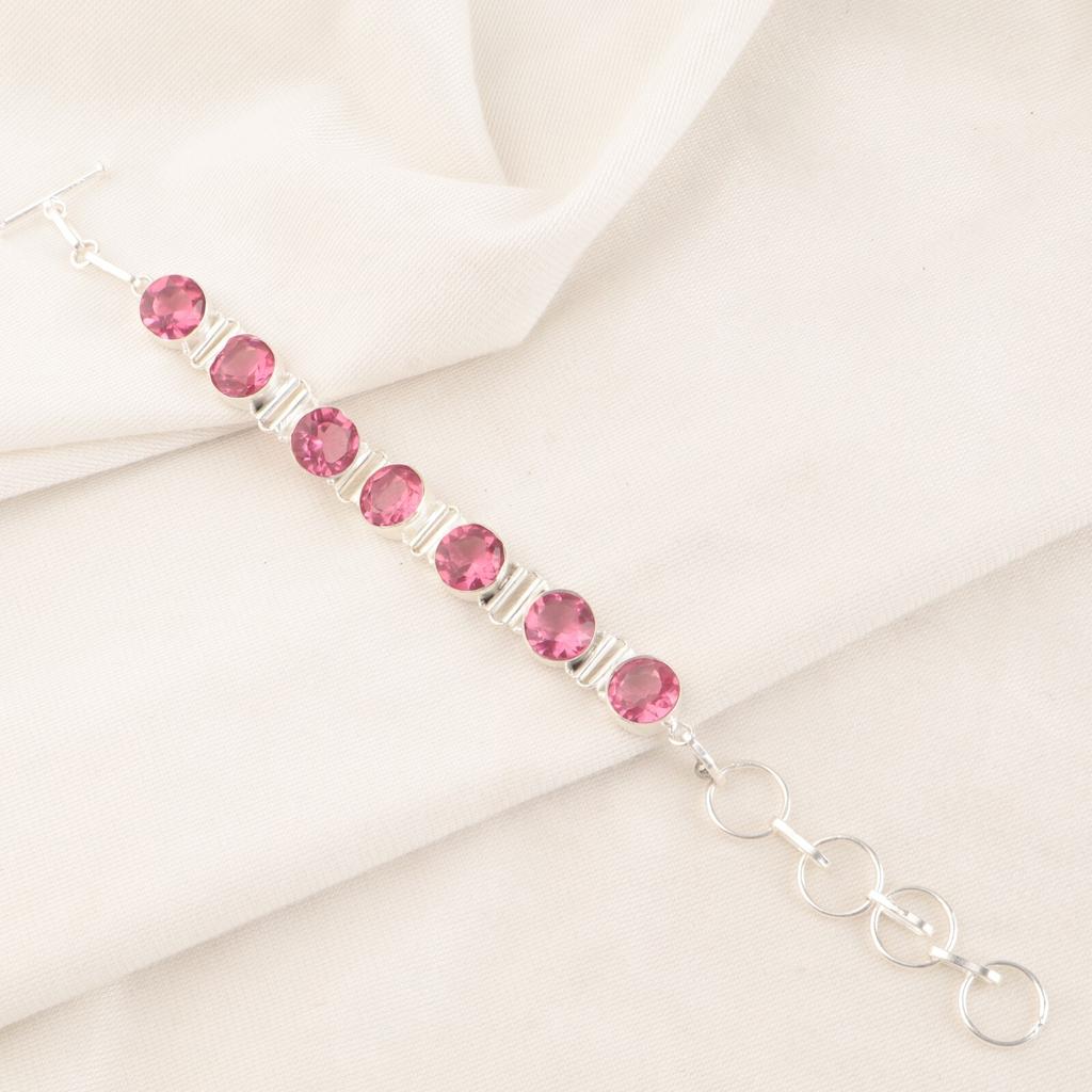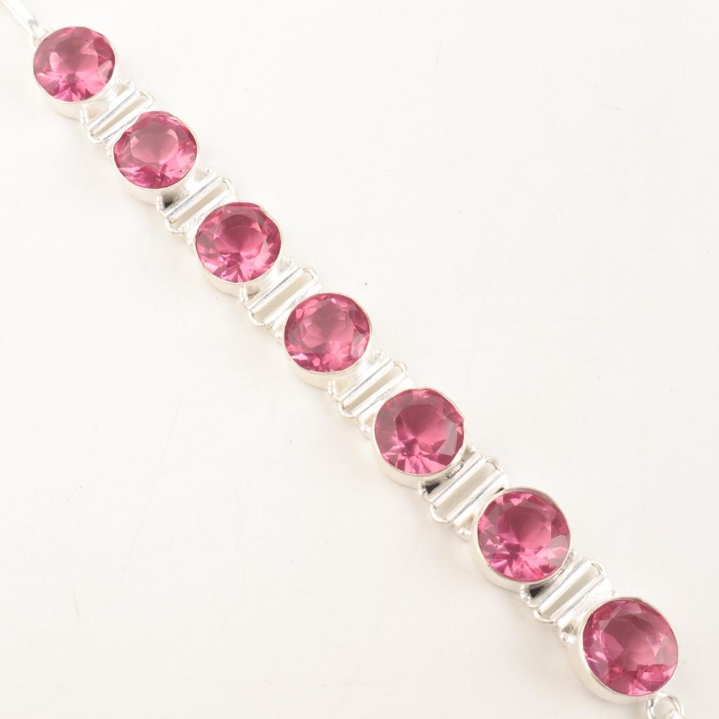 Редкий драгоценный камень розовый турмалин Ювелирные изделия из стерлингового серебра 925 пробы Браслет для вечеринки 9" RB-7-20