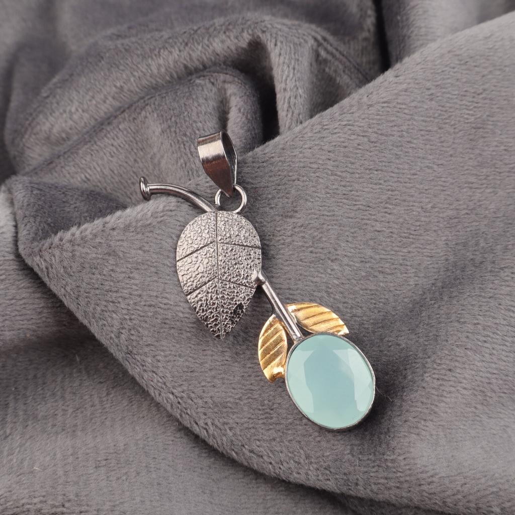 Кулон из аквахалцедона, серебро 925 пробы с клеймом, ювелирное изделие с драгоценным камнем, камень марта, PP-55-19