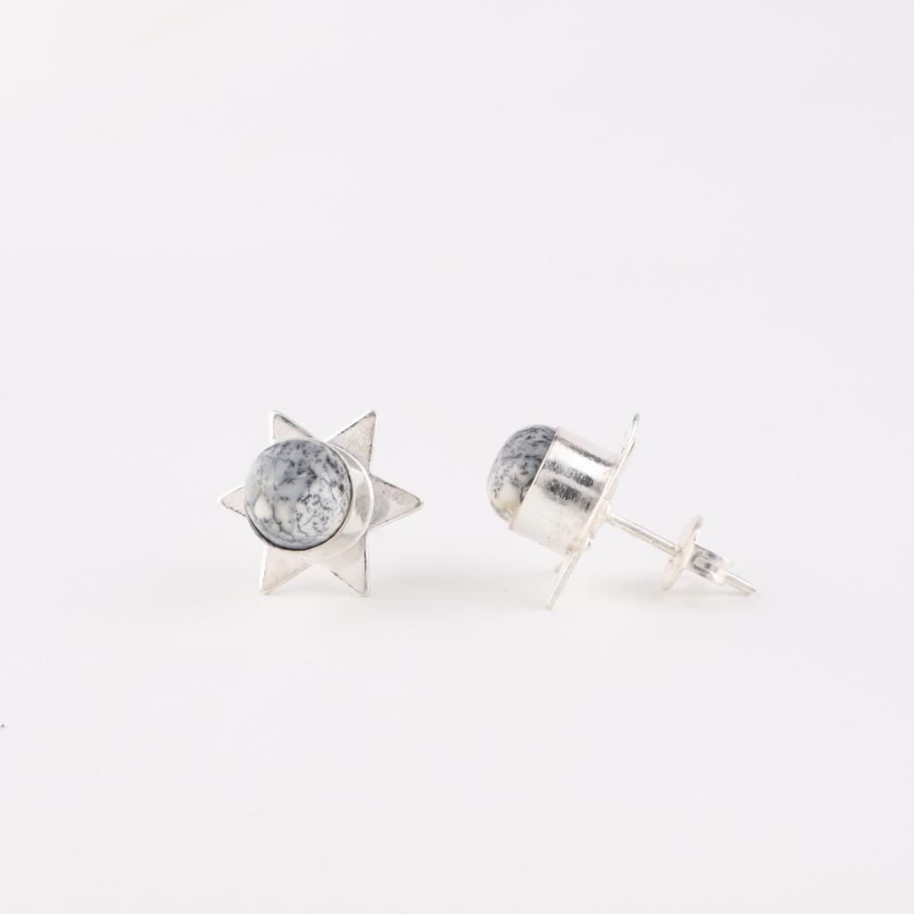 Натуральный Дендритовый Опал Драгоценный Камень 925 Стерлинговое Серебро Ювелирные Изделия Серьги-пусеты 0,44" EE-175-29