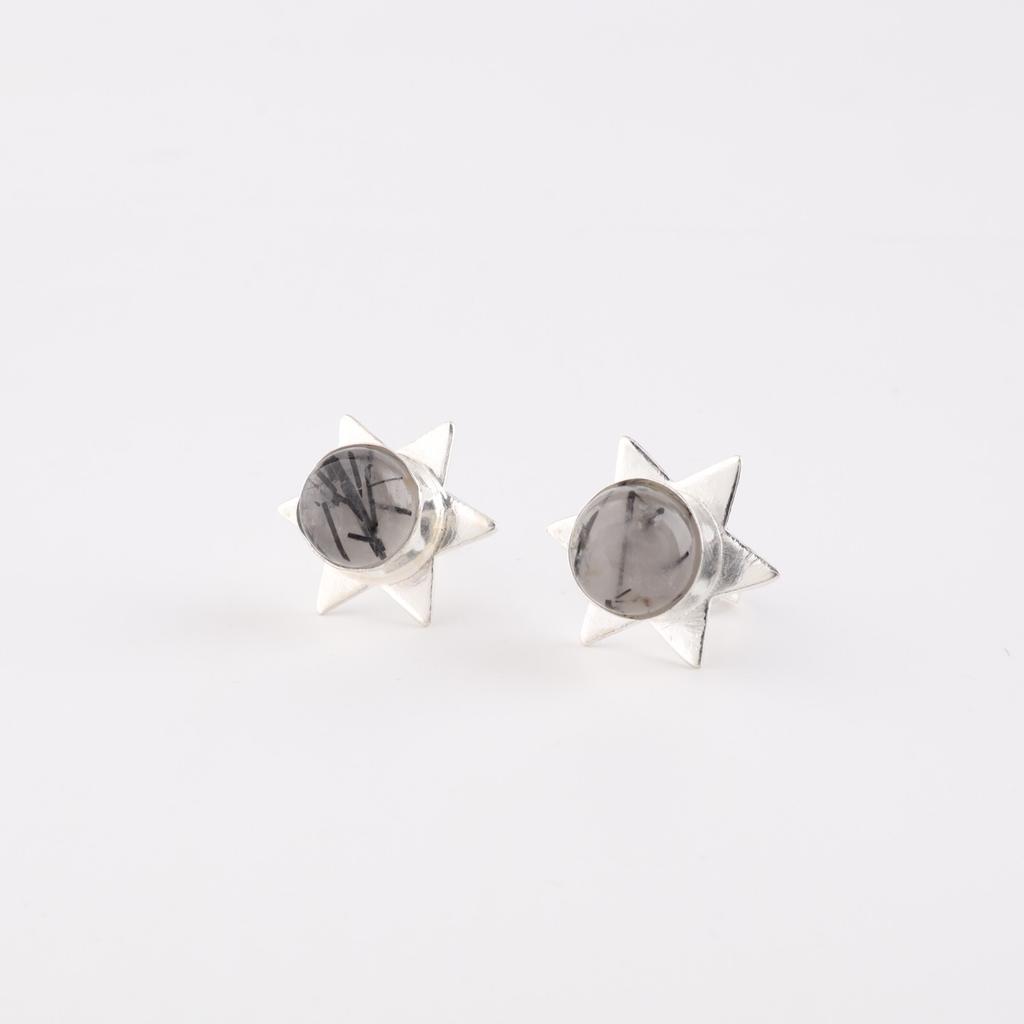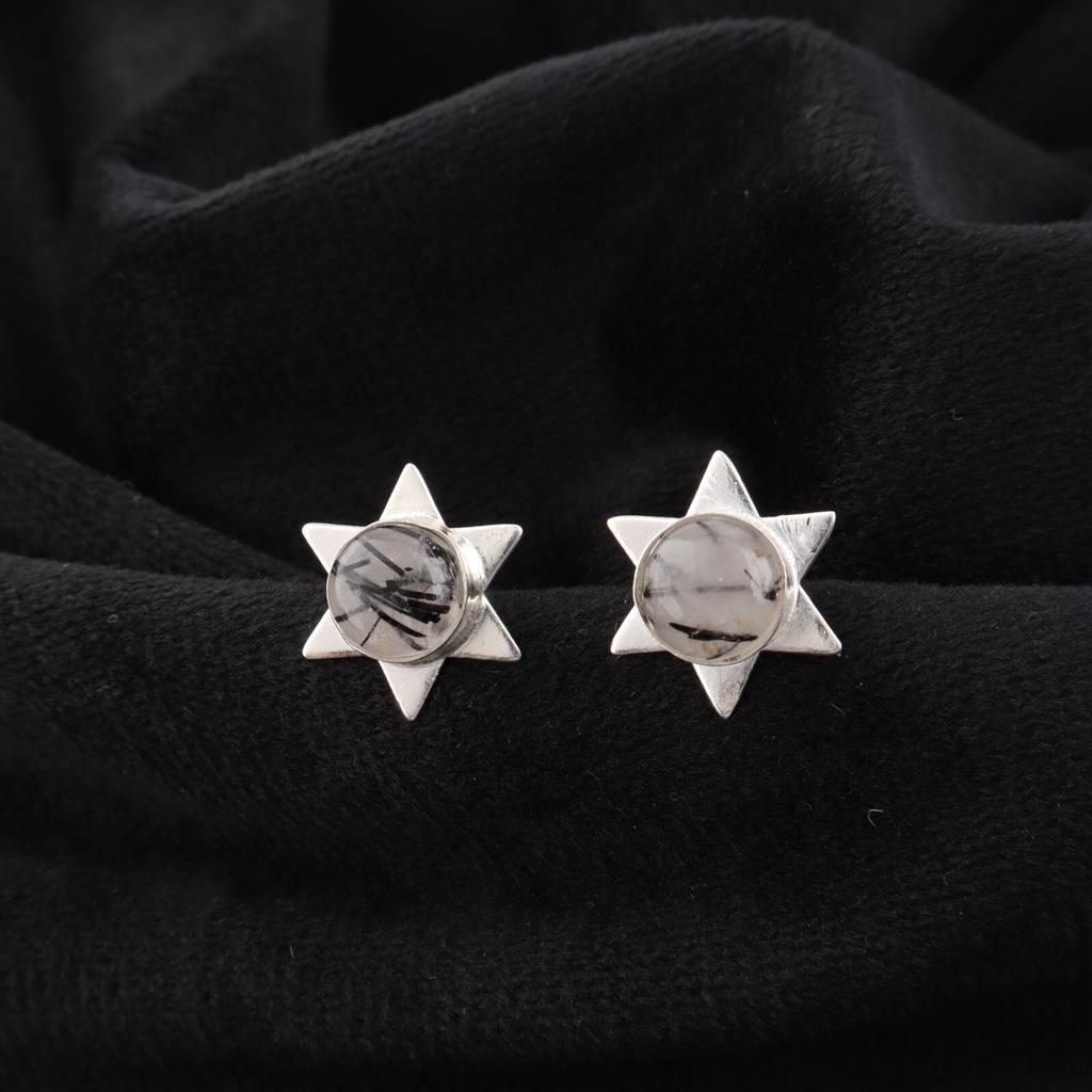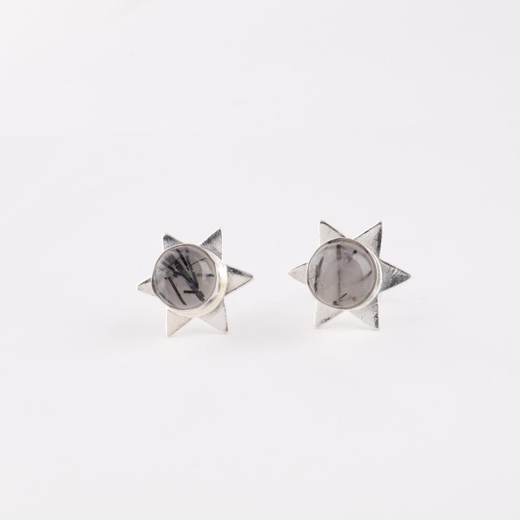 Натуральный камень черный рутил, ювелирные изделия из стерлингового серебра 925 пробы, серьги-пусеты 0,44" EE-175-27