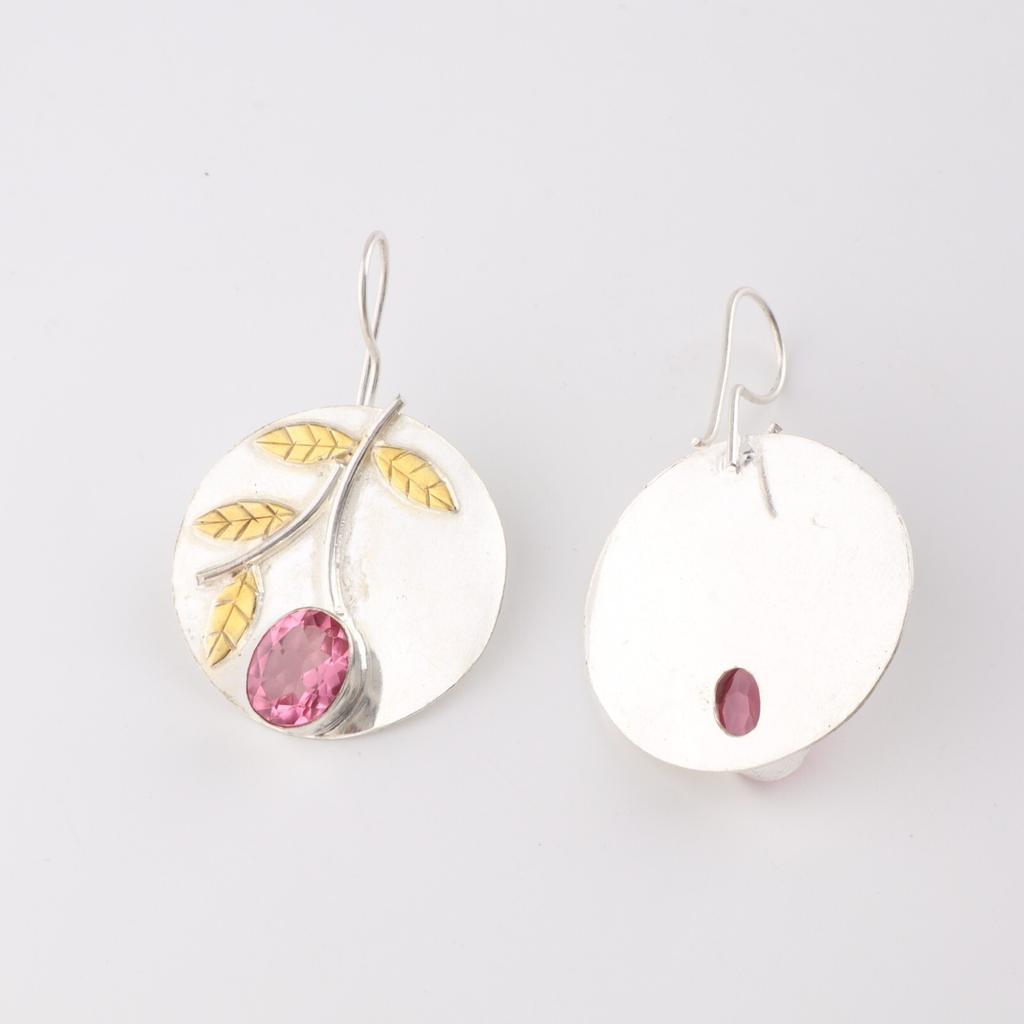 Драгоценный камень Розовый Турмалин Ювелирные изделия из стерлингового серебра 925 пробы Ручной работы Серьги 1.73" EE-176-5