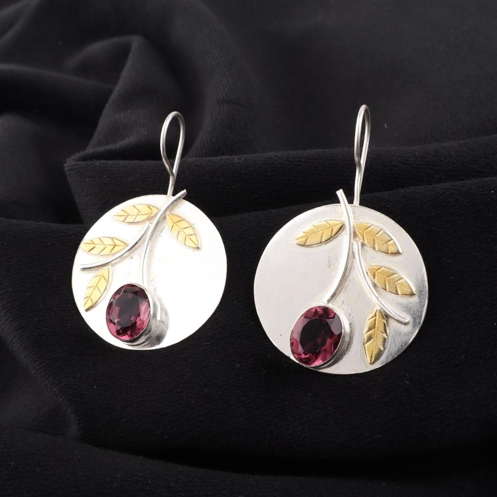 Родолит Драгоценный камень Ювелирные изделия из серебра 925 пробы Серьги ручной работы 1,73" Для подарка EE-176-4