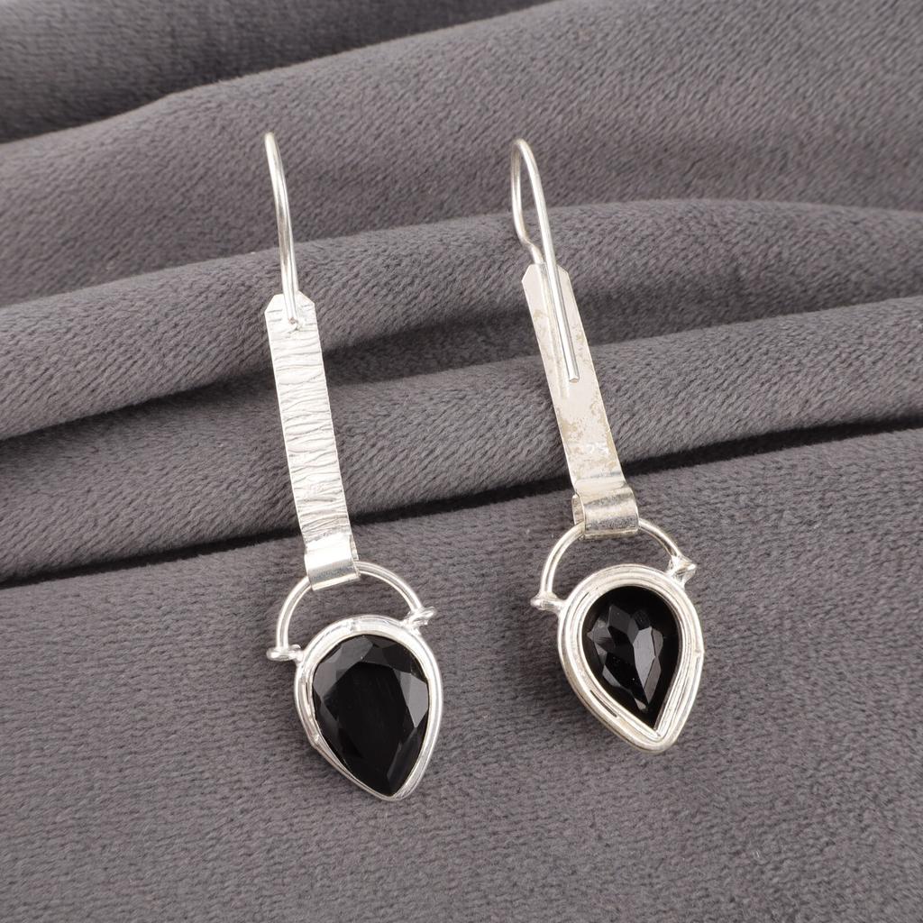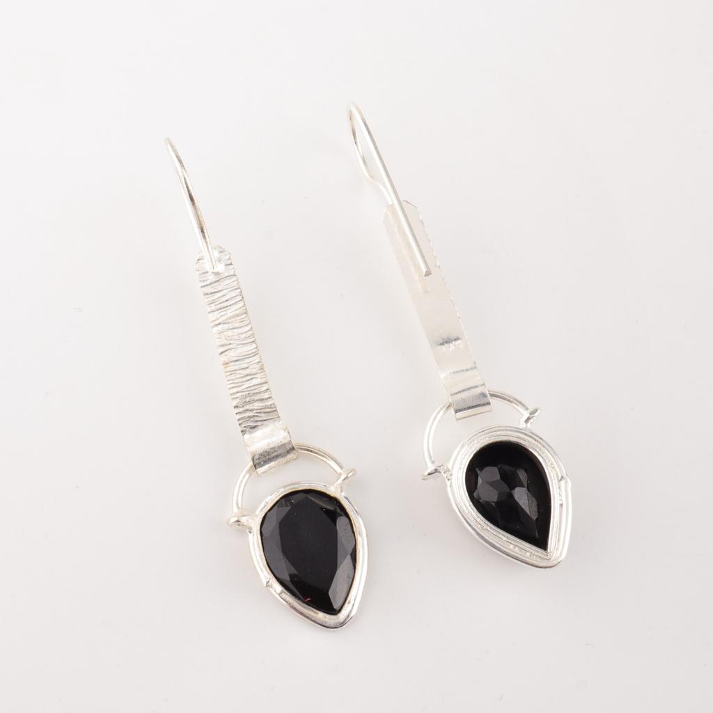 Драгоценный камень Черный Оникс Ювелирные изделия из серебра 925 пробы Ручная работа Богемные серьги 2,3" EE-166-18