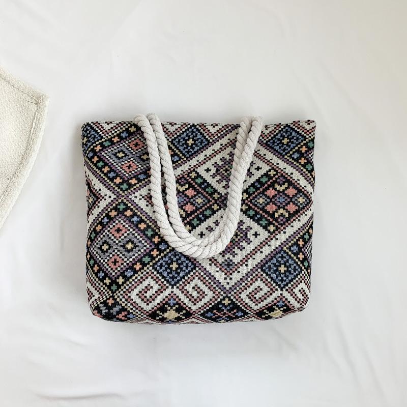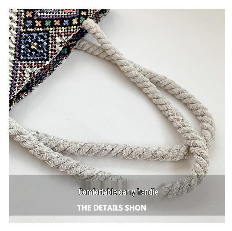 Женская сумка-тоут в этническом стиле большой вместимости 2024: Трендовая сумка через плечо для студентов