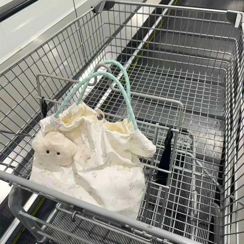 Холщовая сумка-тоут женская с цветочным принтом и белым кроликом, большой вместимости