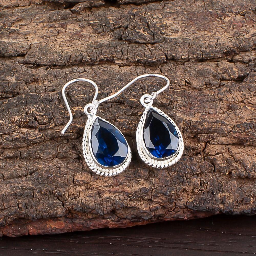Лондонский голубой топаз Драгоценный камень 925 Стерлинговое серебро Ювелирные изделия ручной работы Серьги 1,40" EE-9-7