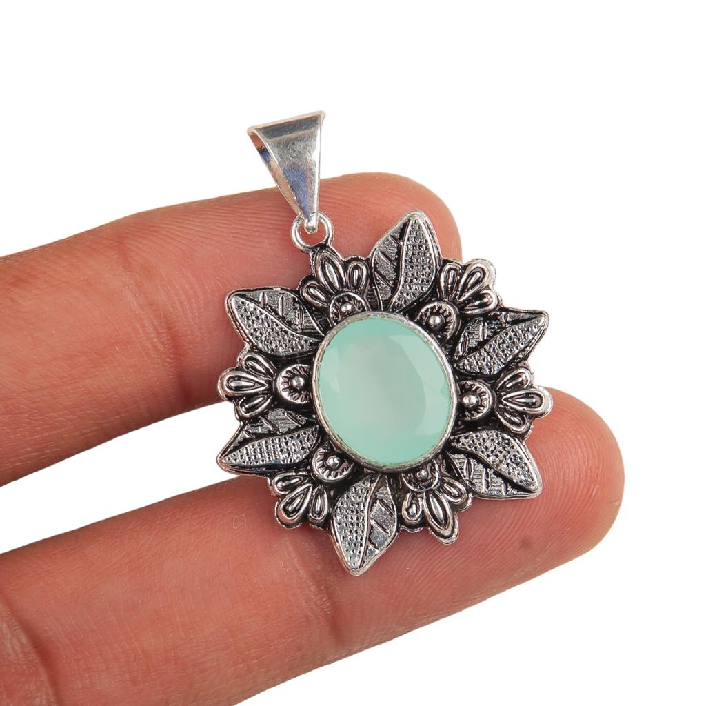 Редкий самоцвет аквахалцедон, серебро 925 пробы, ювелирное изделие ручной работы, подвеска 1,59" CP-14-9