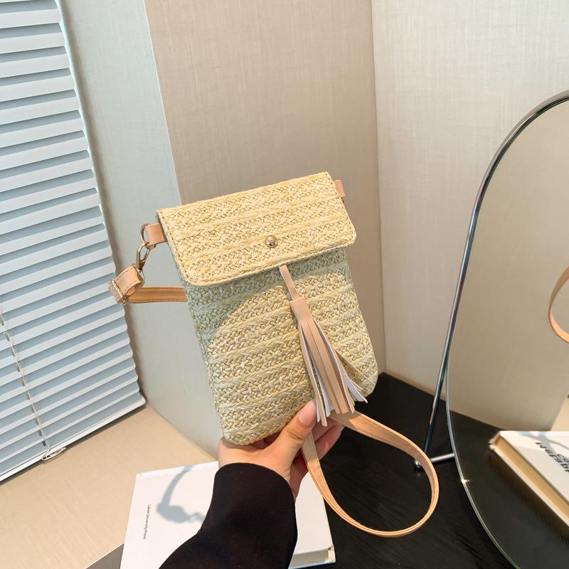 2024 Весна/Лето Женская Модная Ретро Соломенная Плетеная Сумка для Телефона - Пасторальный и Литературный Стиль