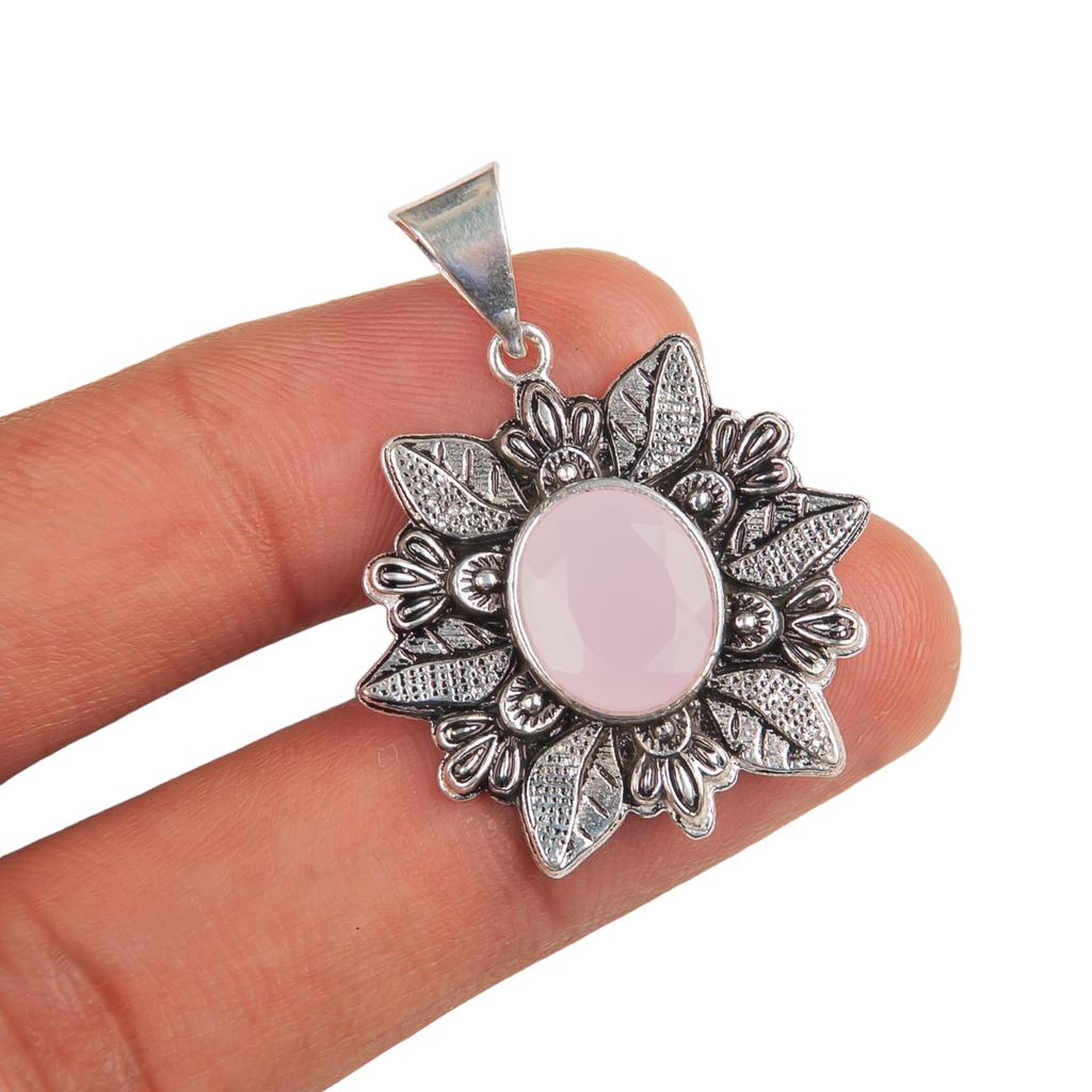 Редкий драгоценный камень розовый халцедон, серебро 925 пробы, ювелирное изделие ручной работы, подвеска 1,59" CP-14-7