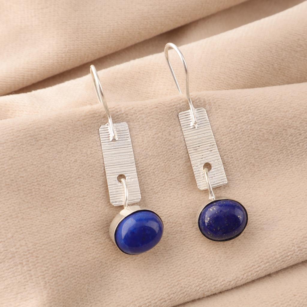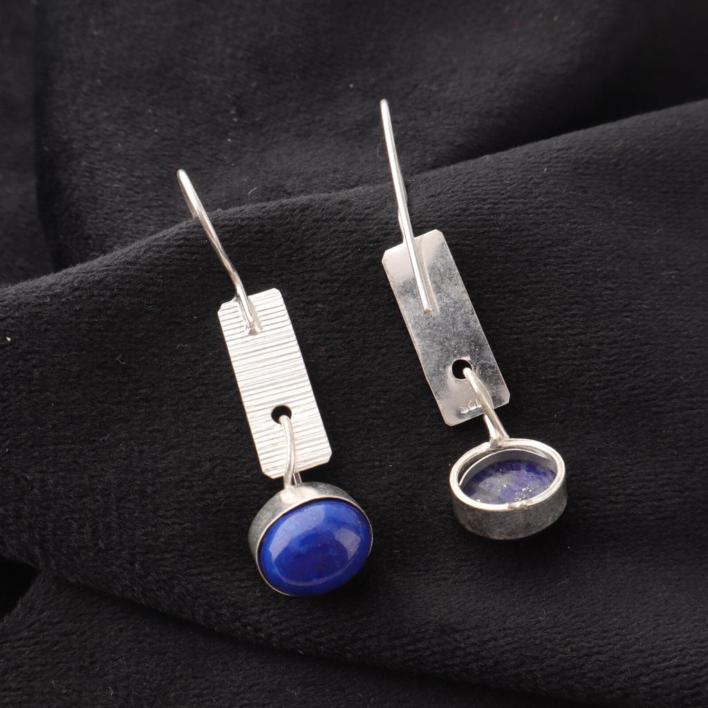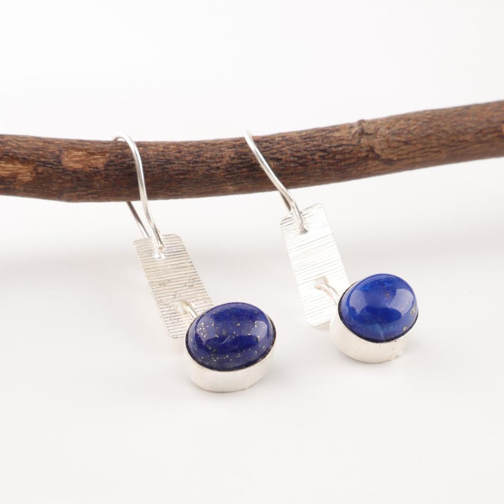 Лазурит Драгоценный камень 925 Проба Серебро Женские украшения Ручной работы Серьги 1,9" EE-168-25