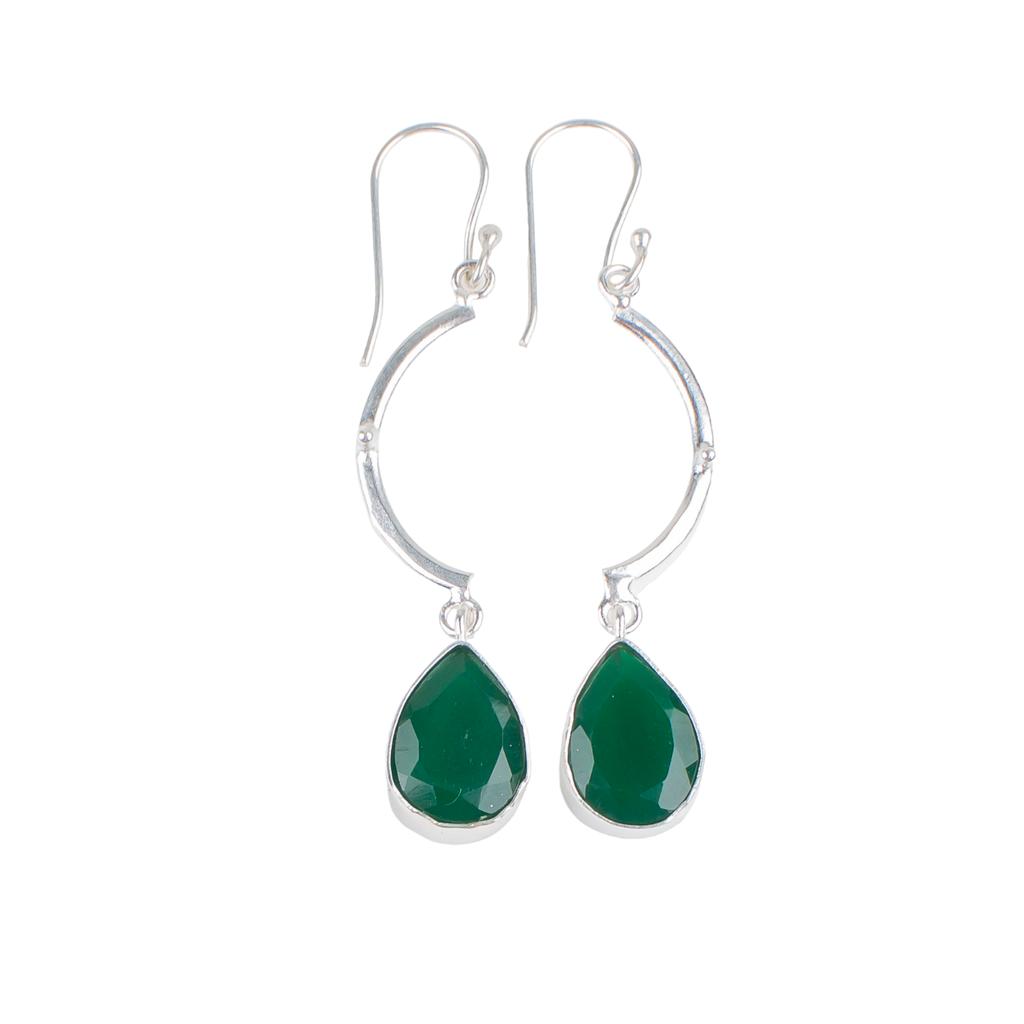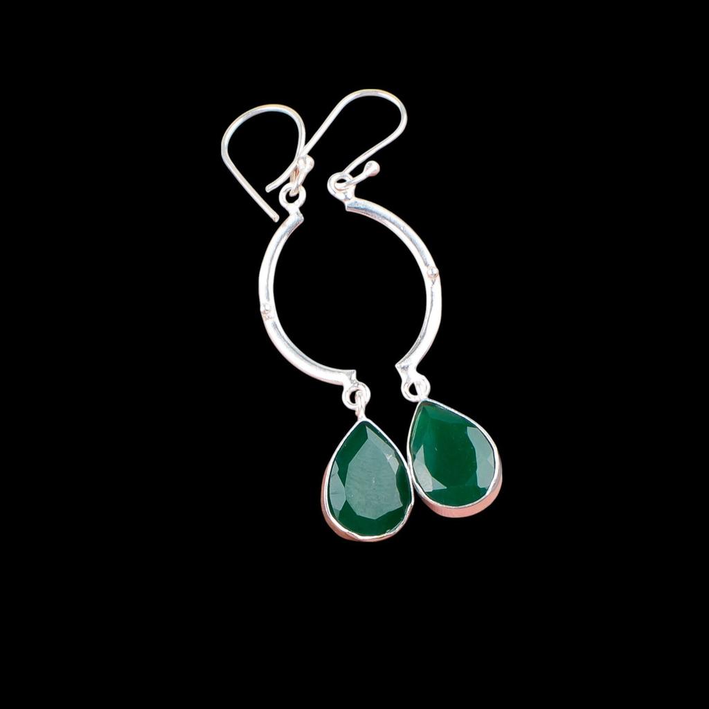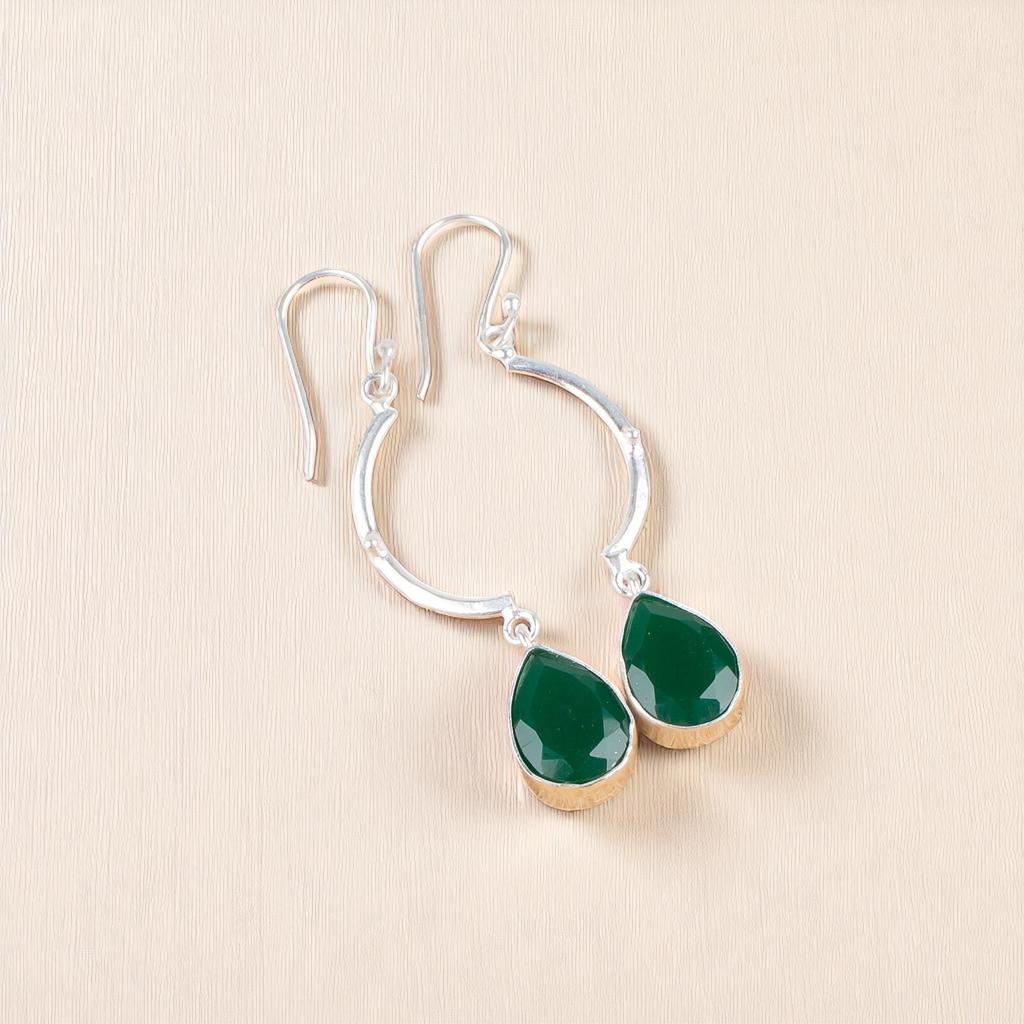Зеленый Оникс Драгоценный Камень Серебро 925 пробы Ювелирные Изделия Ручной Работы Свадебные Серьги 2,60" EE-43-16