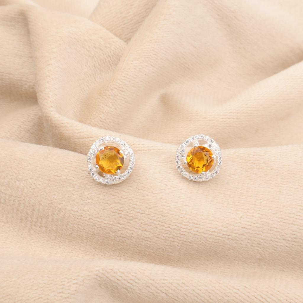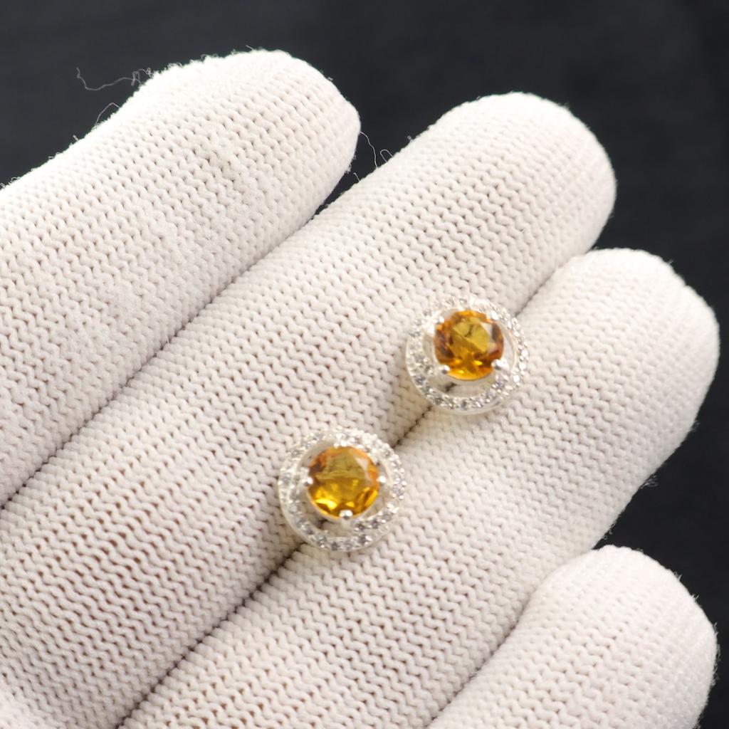Натуральный цитрин драгоценный камень 925 стерлинговое серебро ювелирные изделия циркон серьги-пусеты 0,41" CZE-8-2