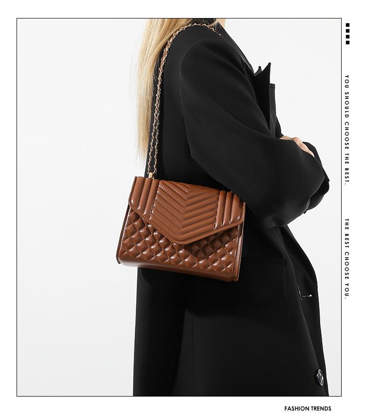 Женская сумка-кроссбоди на цепочке с ромбовидным узором 2024