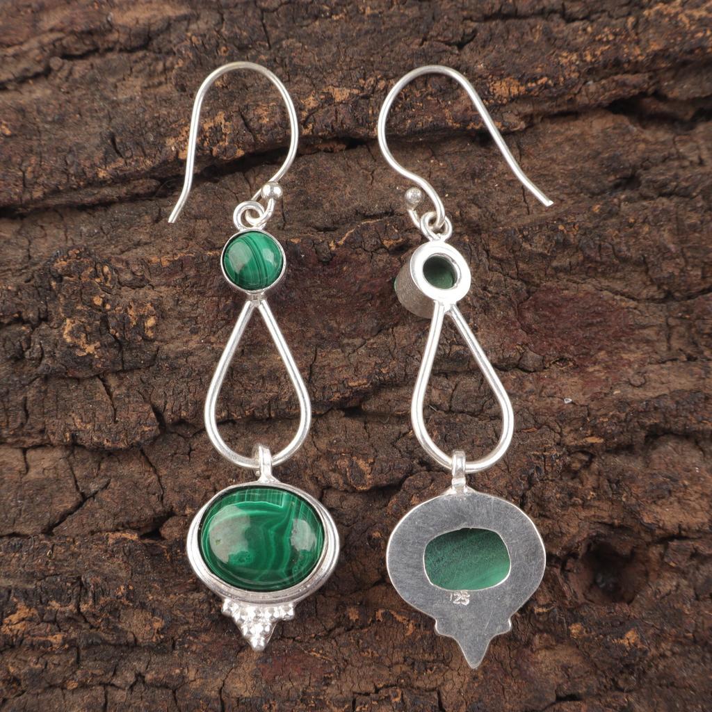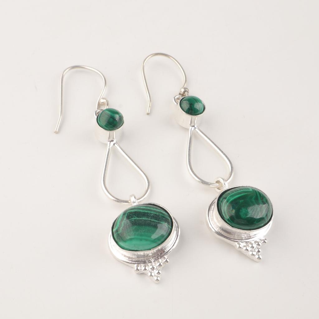 Зеленые овальные малахитовые серьги-подвески из стерлингового серебра 925 пробы 2,50" EE-132-19