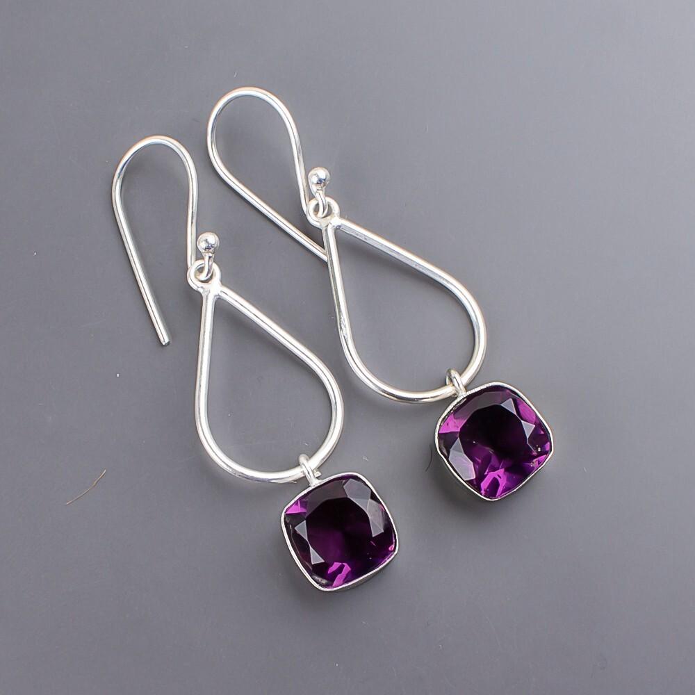 Натуральный Аметист Драгоценный Камень 925 Стерлинговое Серебро Ручной Работы Ювелирные Изделия Серьги 1.90" EE-7-3