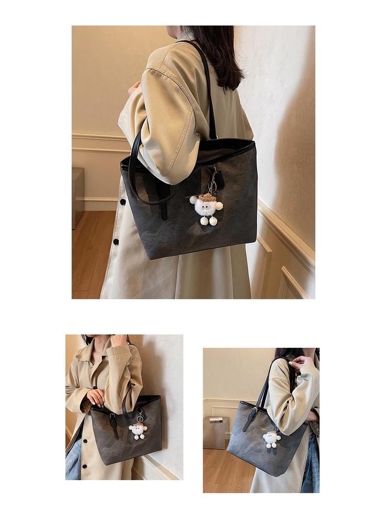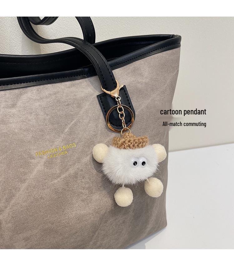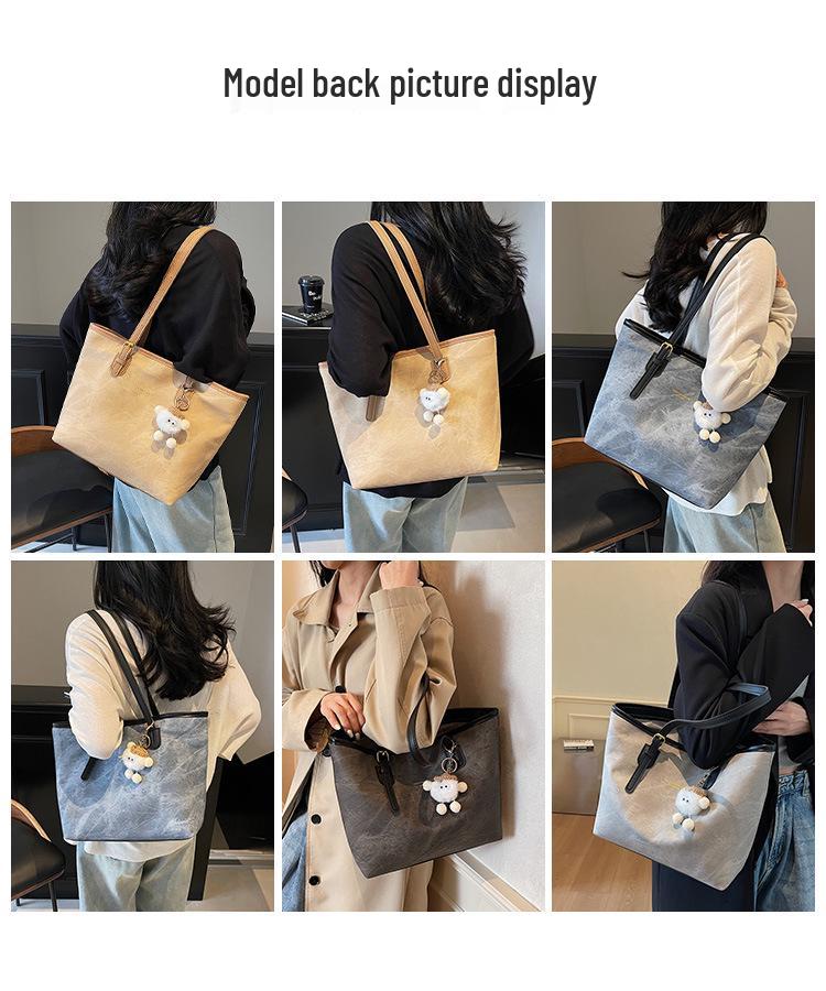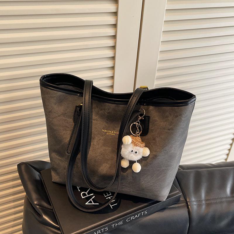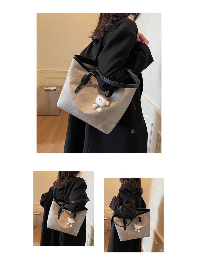 Зимняя сумка-тоут с подвеской в стиле ретро, однотонная, большая вместимость, модный дизайн на одно плечо для женщин