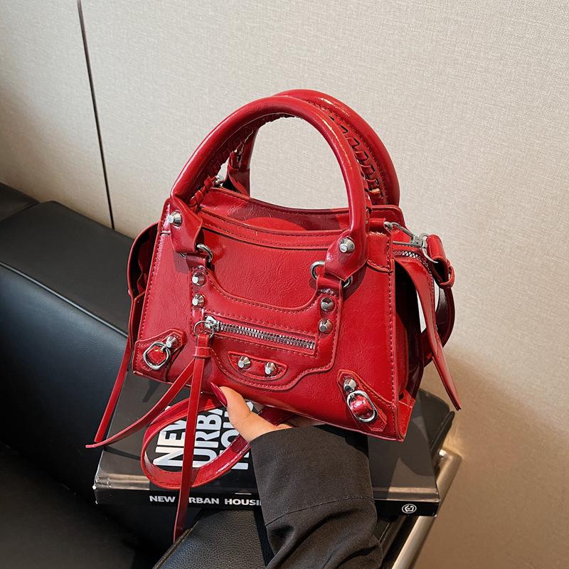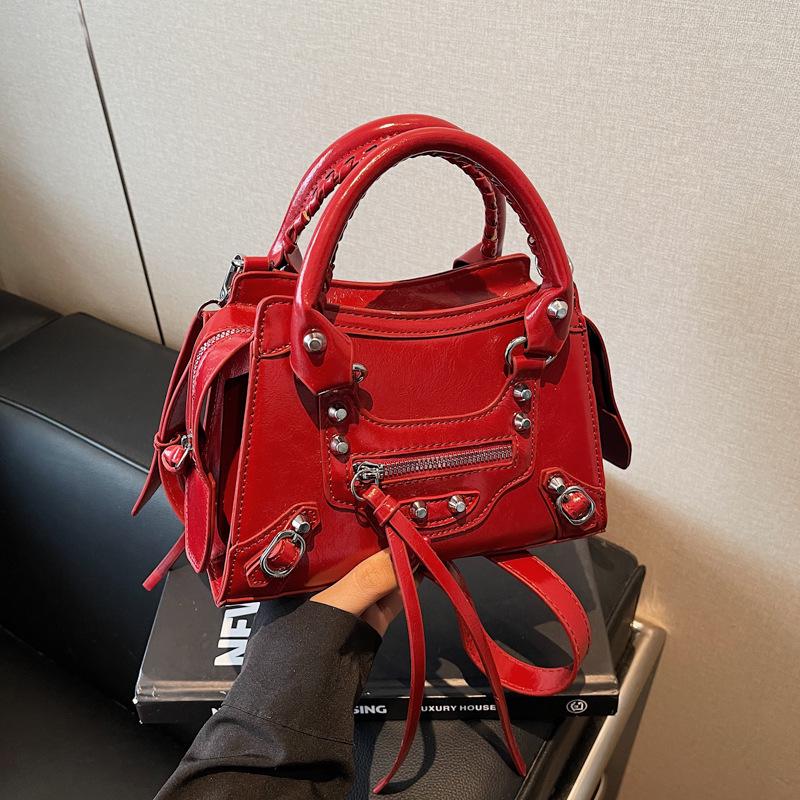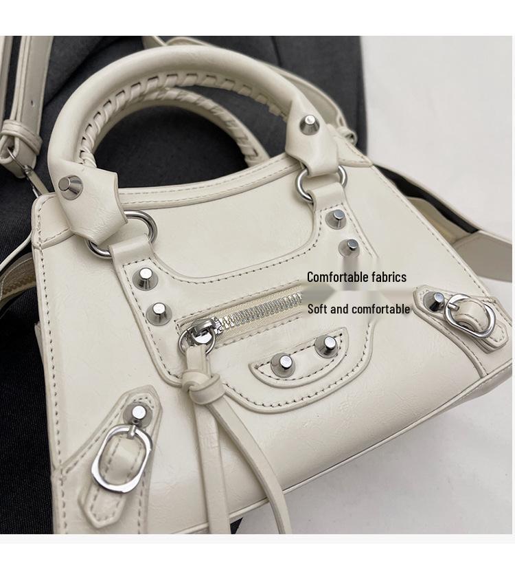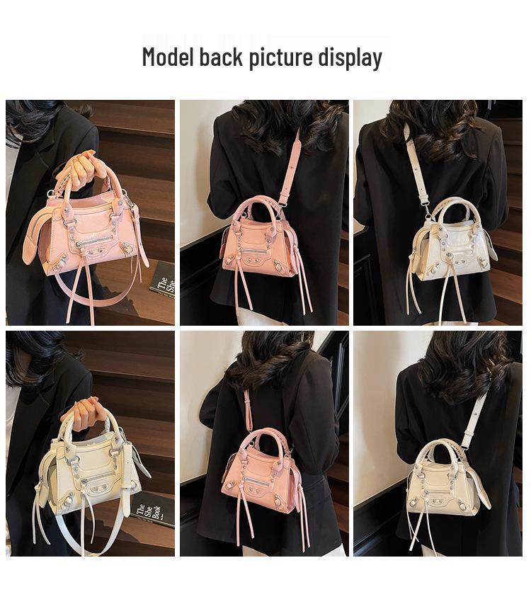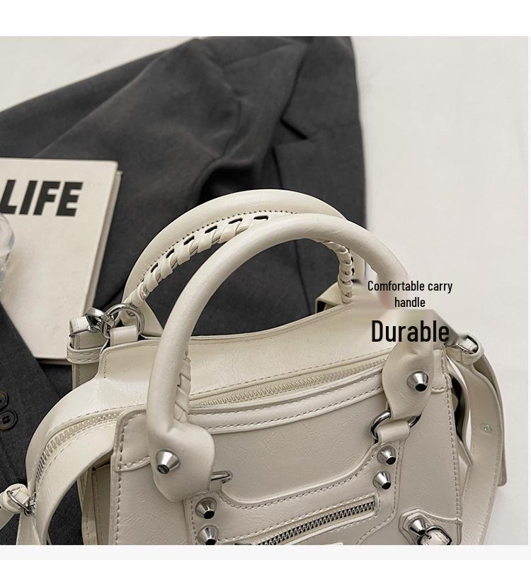 Весна 2025 Гонконгская ретро сумка кроссбоди с заклепками: Сладкая и острая наплечная сумка для модных женщин