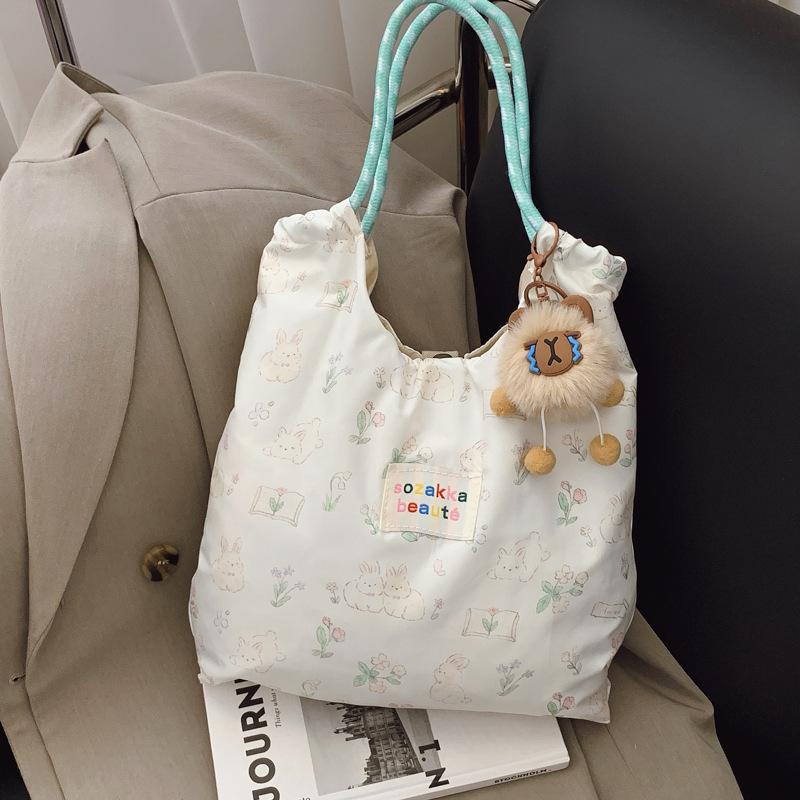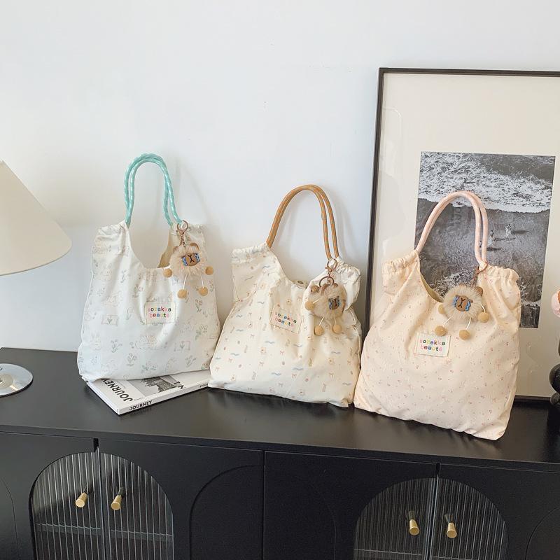 Корейская холщовая сумка-тоут с тисненым мультяшным рисунком - Сумка большой вместимости для женщин (2025)