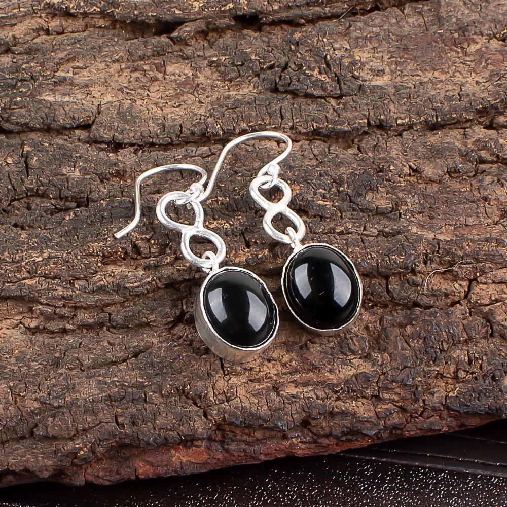 Драгоценный камень Черный Турмалин Ювелирные изделия из серебра 925 пробы Серьги ручной работы 1,60" EE-12-25