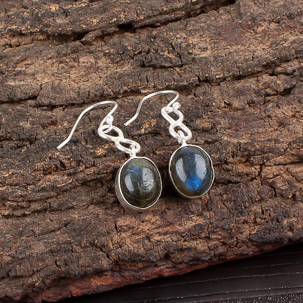 Натуральный лабрадорит, драгоценный камень, серебро 925 пробы, ручная работа, ювелирные изделия, серьги 1,60" EE-12-19