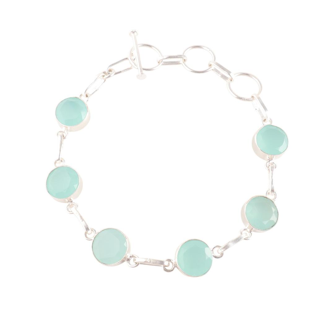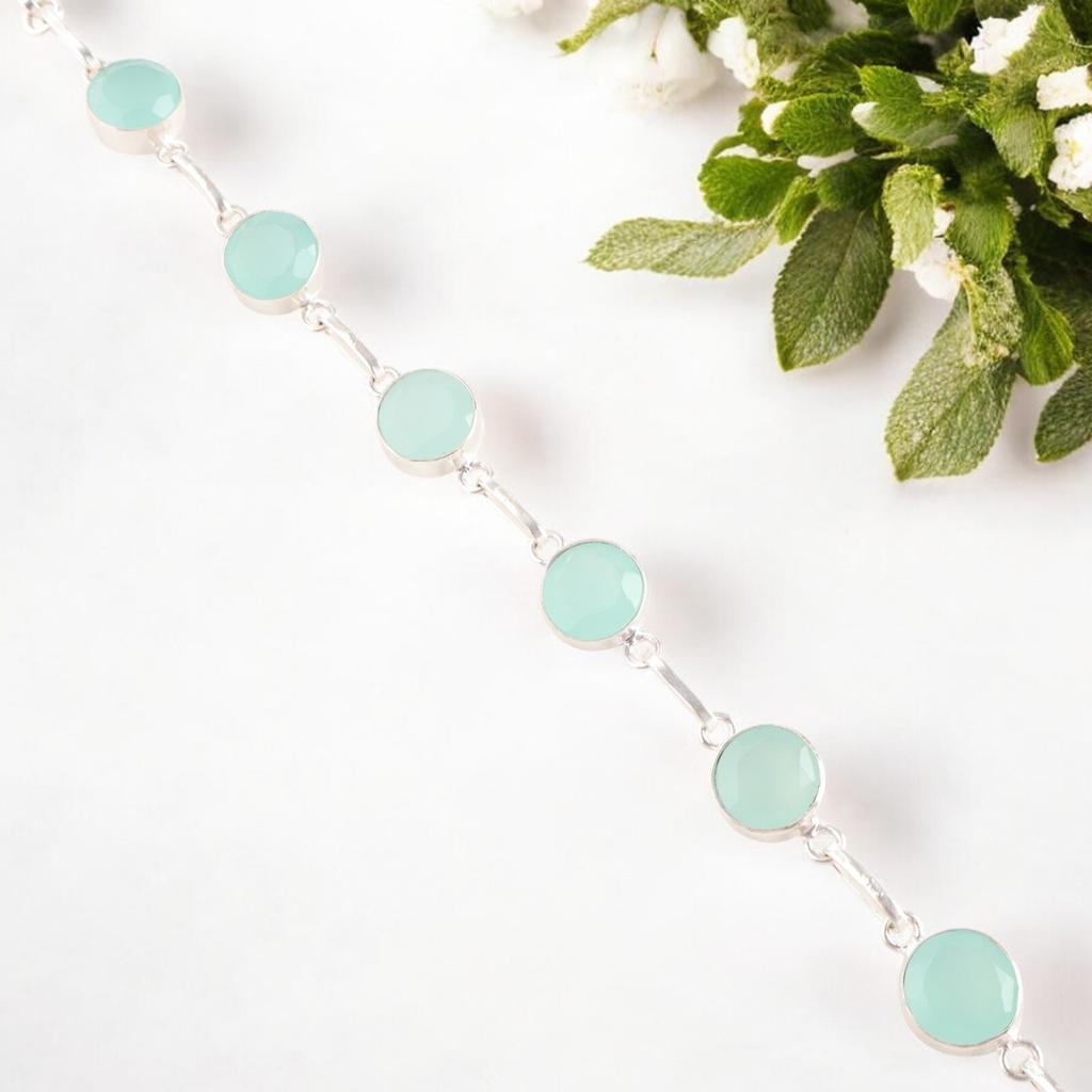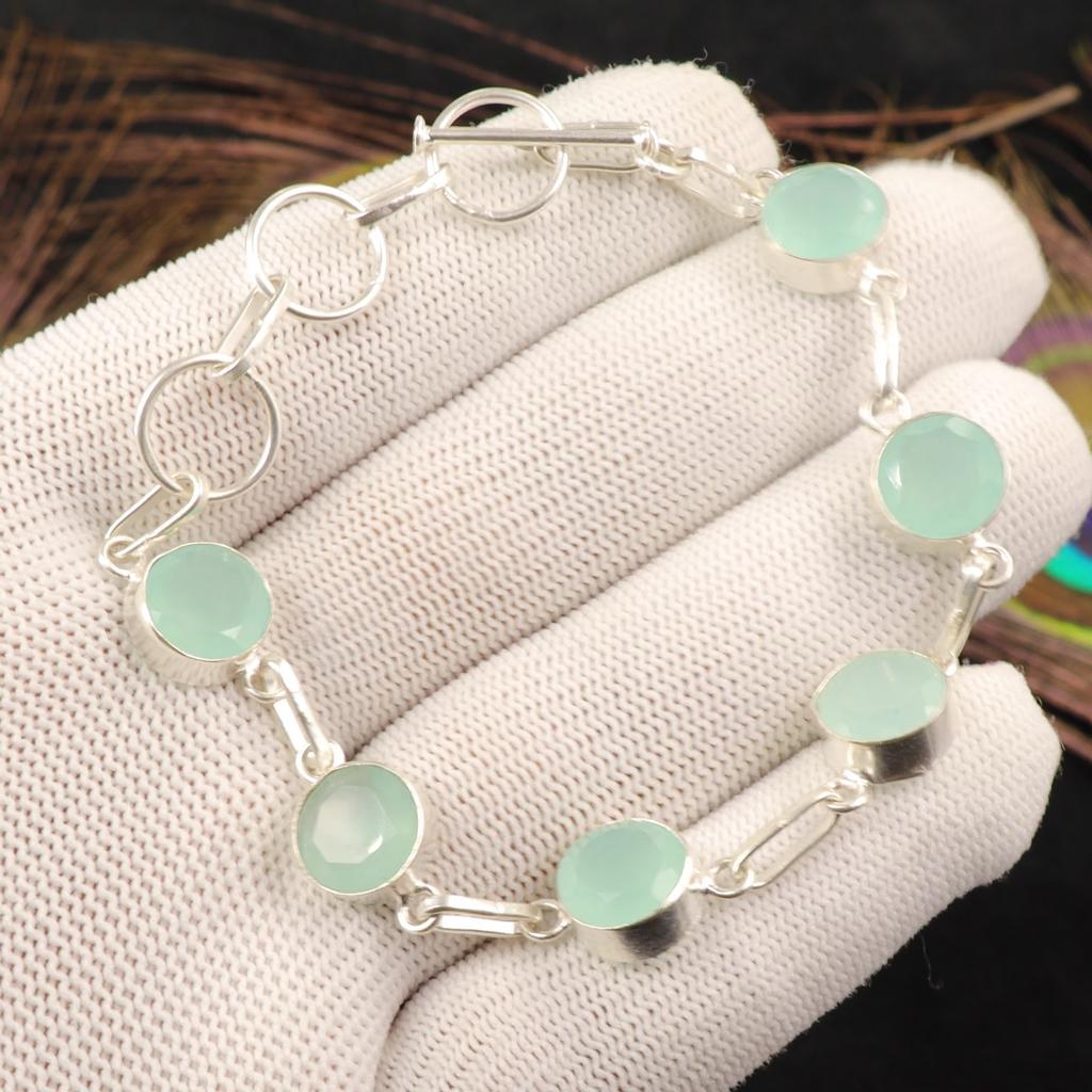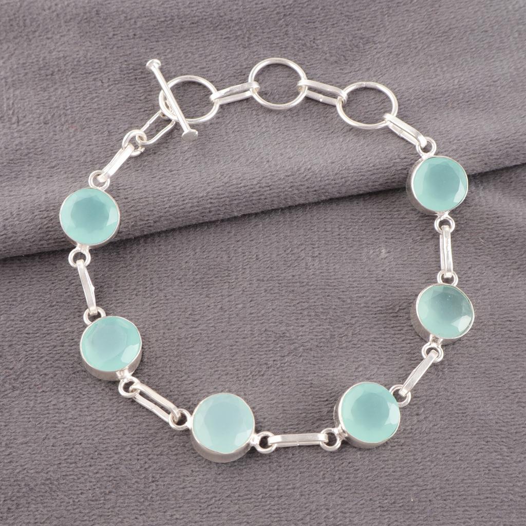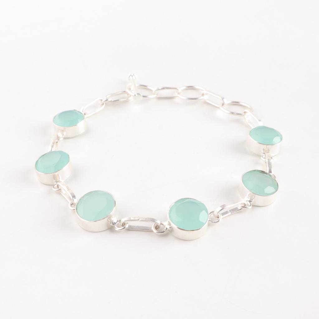 Аква Халцедон Драгоценный Камень 925 Проба Серебро Ювелирные Изделия Ручной Работы Браслет Подарок на День Рождения RB-14-18