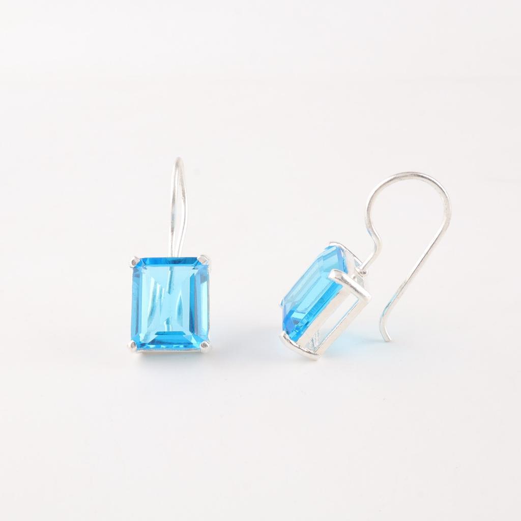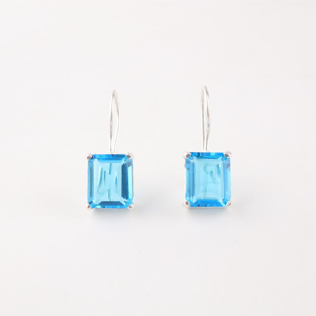 Натуральный швейцарский голубой топаз, драгоценный камень, серебро 925 пробы, серьги ручной работы 1,06" EE-167-9