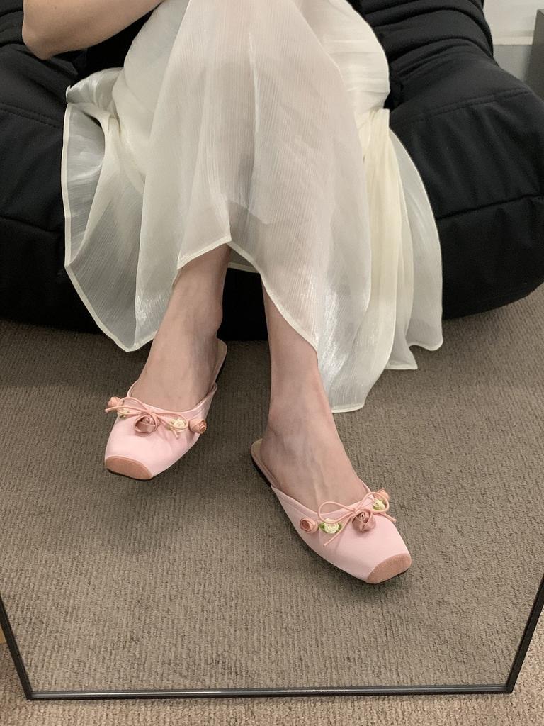 Полутапочки новые на плоской подошве с закрытым носком одинарная обувь сандалии розовые женские туфли