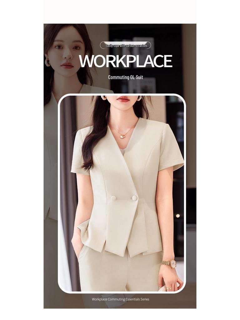 Поднимите свой профессиональный гардероб на новый уровень с этим элегантным летним формальным костюмом, разработанным специально для женщин, которые ценят как стиль, так и комфорт на рабочем месте и во время собеседований.. Этот костюм, изготовленный из высококачественного полиэстера, обеспечивает легкую и дышащую посадку, что идеально подходит для теплых месяцев.. Гладкий и современный дизайн обеспечивает изысканный и уверенный внешний вид, что делает его идеальным выбором для любой профессиональной обстановки.