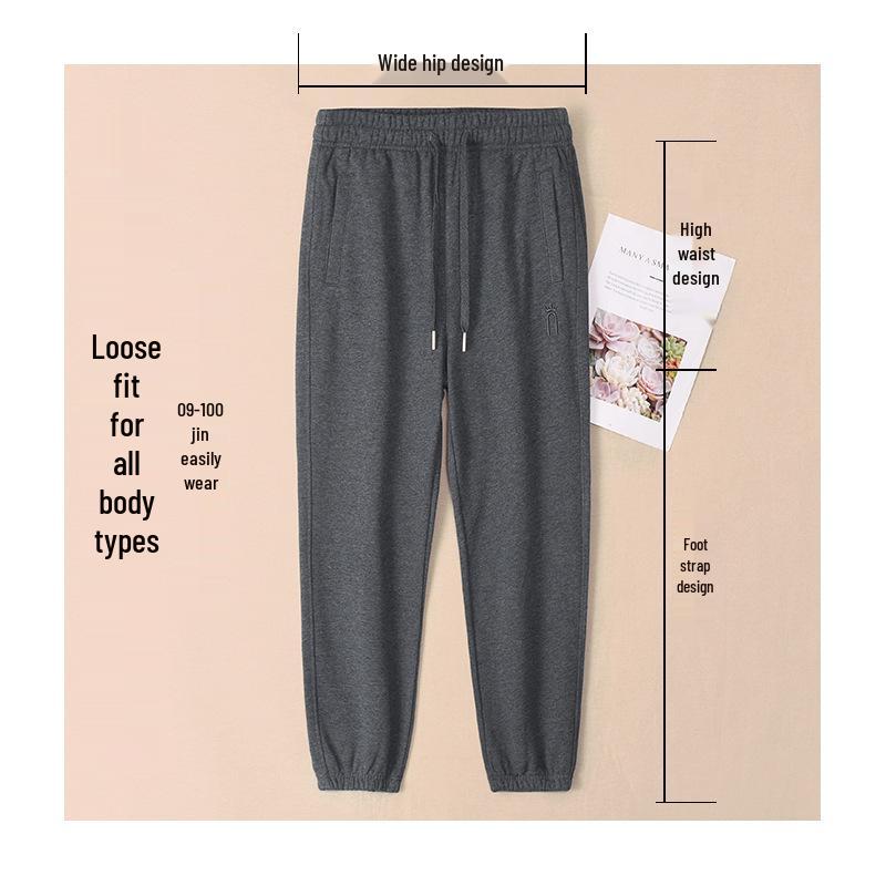 Женские повседневные спортивные штаны темно-серого цвета - Большой размер, 100% хлопок, Коллекция весна-осень 2025