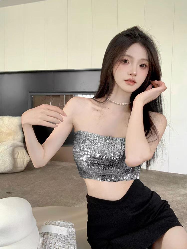 Летний женский топ-жилет с открытыми плечами, пайетками, открытой спиной и без бретелей — купить товар онлайн с бесплатной доставкой до всему миру!