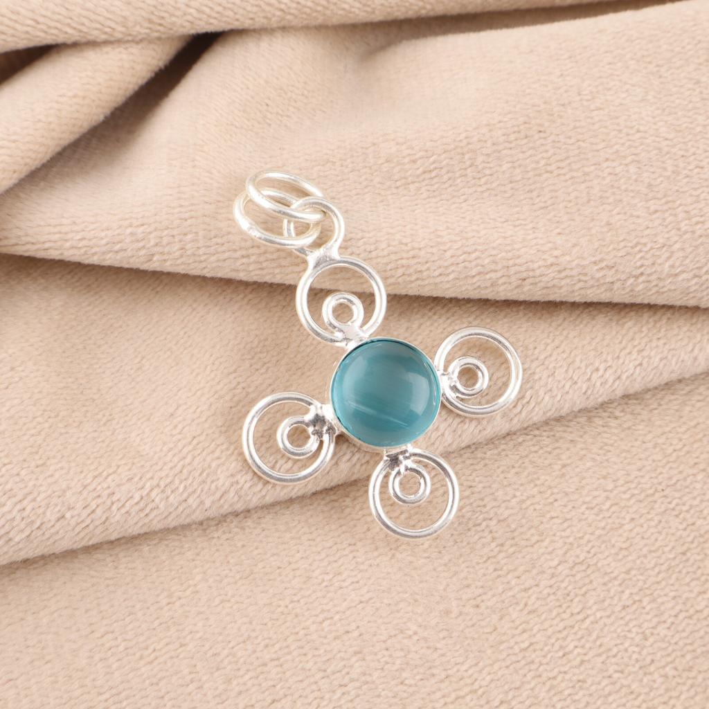 Драгоценный камень «Кошачий глаз» синего цвета, ювелирные изделия из стерлингового серебра 925 пробы ручной работы для повседневной носки, подвеска PP-41-47