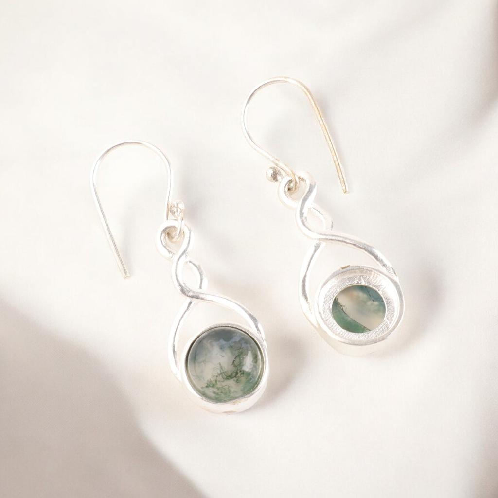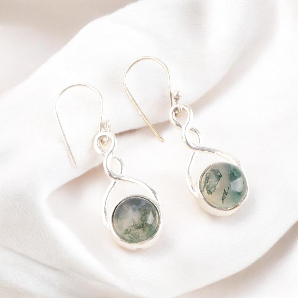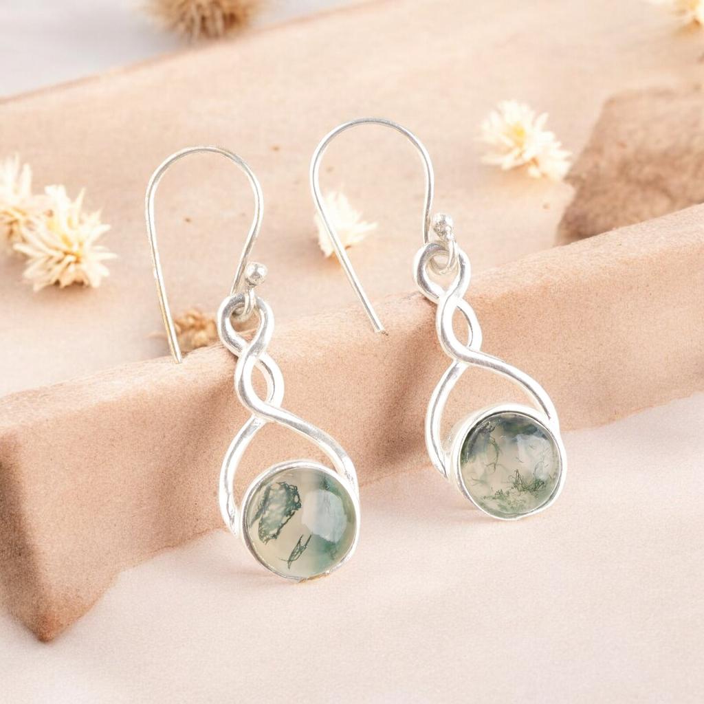 Натуральный зеленый моховой агат 935 стерлинговое серебро ручной работы серьги-крючки для жены CE-15-35
