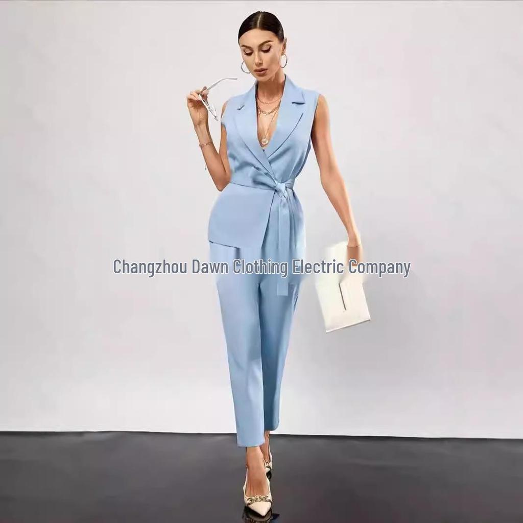 Обновите свой летний гардероб этим шикарным костюмом-двойкой, состоящим из стильного жилета-пиджака и брюк широкого кроя.. Этот ансамбль, изготовленный из удобного полиэстера, идеально подходит для тех, кто любит спортивный, но изысканный стиль.. Дышащая ткань обеспечивает комфорт в теплые дни, а брюки широкого кроя создают выигрышный силуэт для любого типа фигуры.. Идеально подходящий как для повседневных прогулок, так и для более формальных случаев, этот комплект органично сочетает в себе практичность и современную моду.