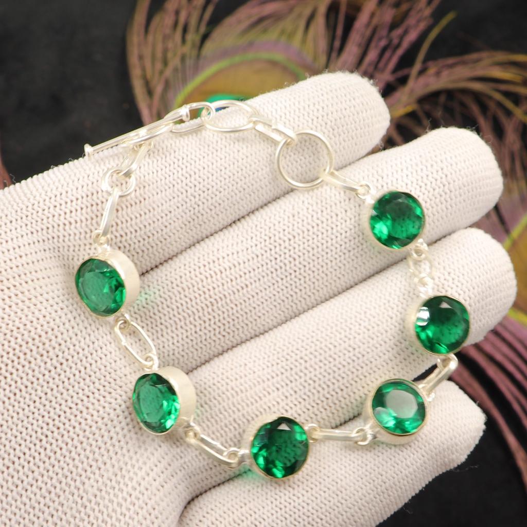 Хромдиопсид Драгоценный камень Ювелирные изделия из стерлингового серебра 925 пробы Ручной работы Женский браслет RB-14-1